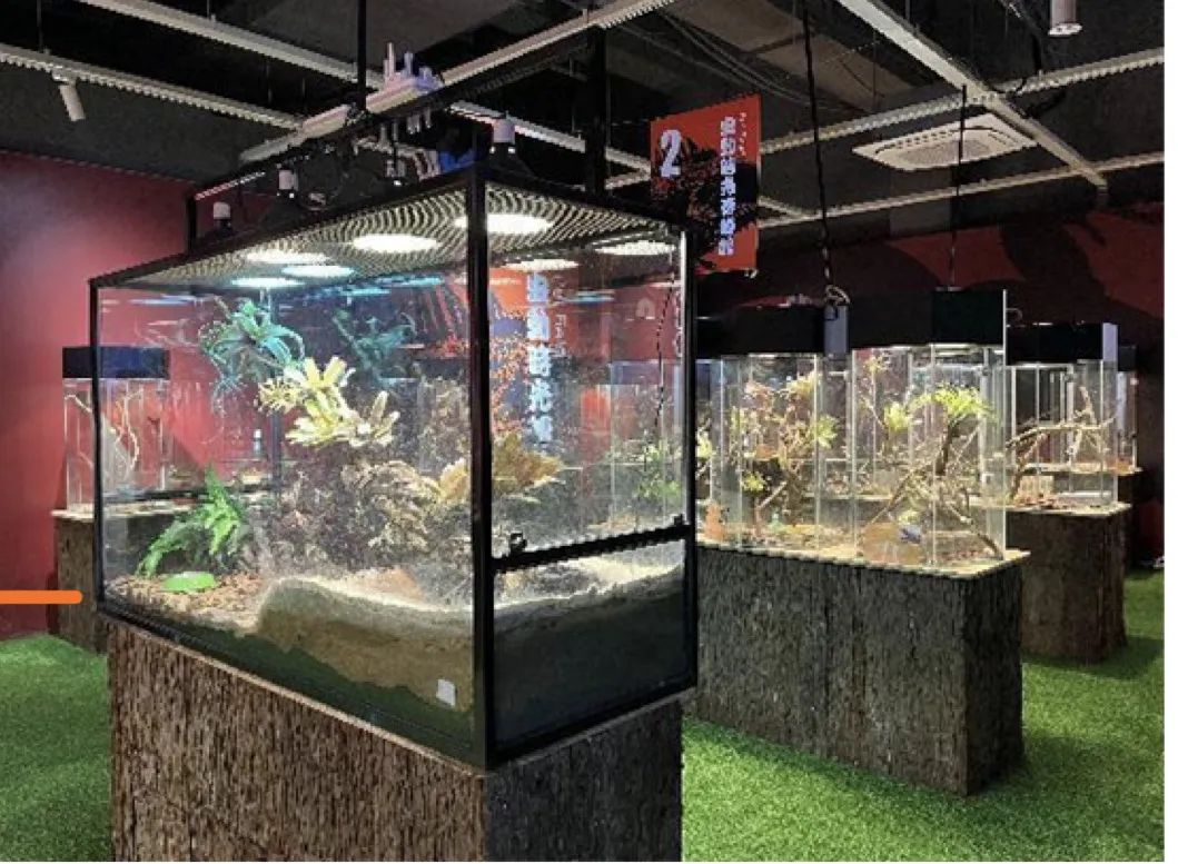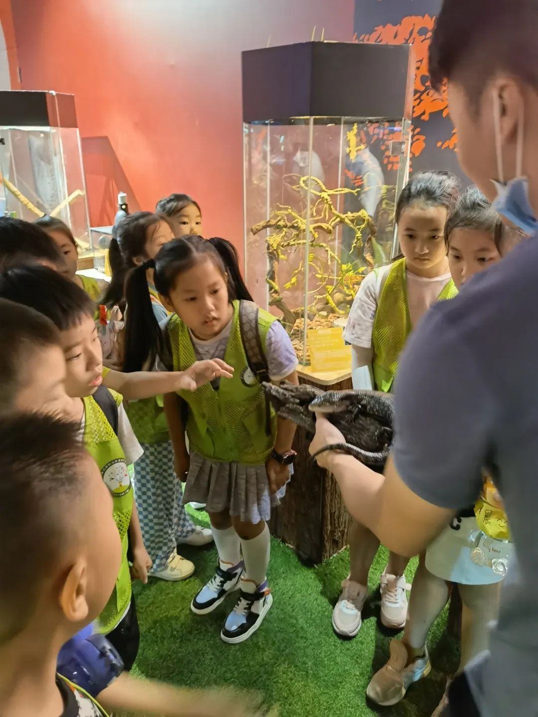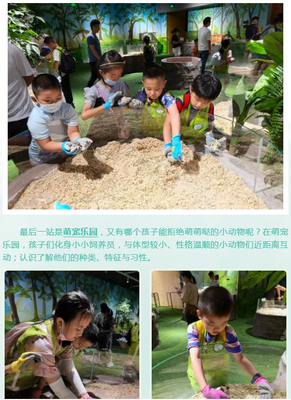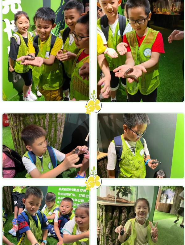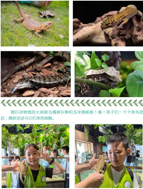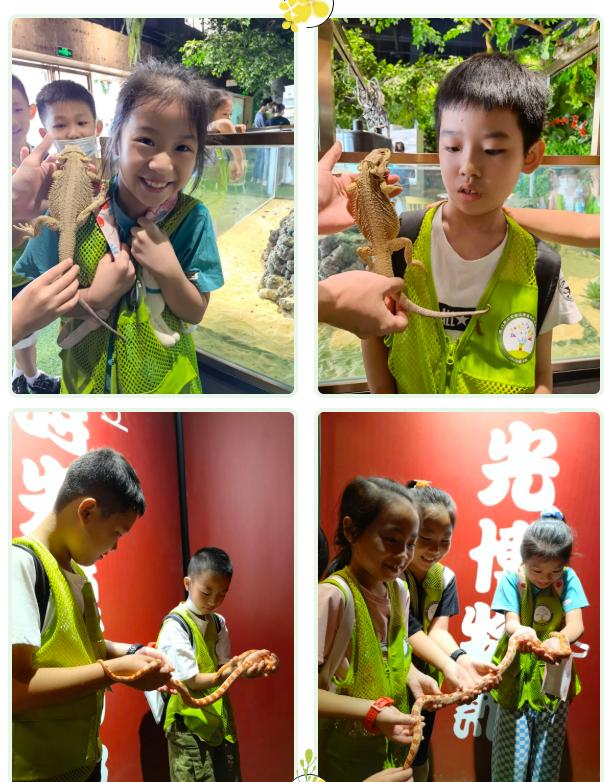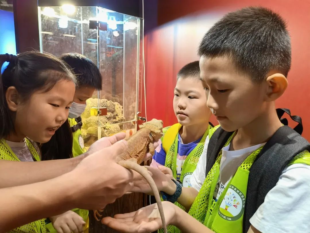 两栖动物馆和爬行动物馆也让孩子们眼界大开。两栖动物是地球上最古老的陆生脊椎动物,由鱼类进化而来。在两栖动物馆里,生活着热带雨林里的树蛙溪流里的蝾螈、沼泽里的南美角蛙等物种。在观察、了解它们的特征和习性后,在馆内老师的引导下,孩子们既惊喜又好奇地和两栖动物们近距离互动。