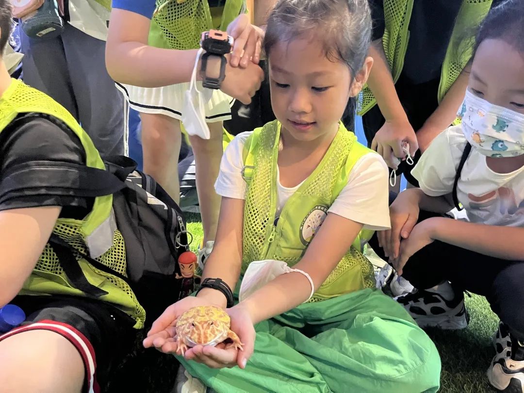 在“两栖”、 “爬行”、“节肢”三大主题展区沉浸式地听虫鸣、寻虫迹、观虫态、读虫趣之后,科普知识讲座开讲啦!指导老师耐心地为小朋友们普及生物链知识及野生动物救助方法,详述了外来物种的危害,讲解潮汐与海洋保护;通过知识抢答、游戏互动进一步提升孩子们爱生护生的意识,鼓励孩子们在观察实践中积累知识、体会乐趣、感受生命,敬畏自然生态,成为“绿水青山”的小小守护者!