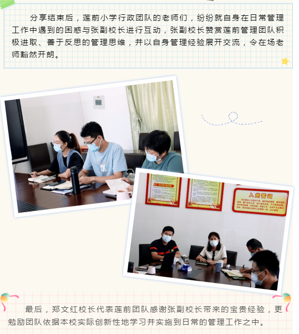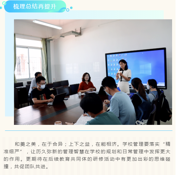 今日的教育,正走向个性化的大众教育阶段,正逐渐呈现出重视个性化发展、创造性发展的教育。为教育共同体的共融共进,提升管理团队的建设,2022年9月30日,厦门第二实验小学教育共同体“赢在中层”管理团队建设系列研讨活动在莲前小学开展。莲前小学郑文红校长主持本次研讨活动,莲前行政管理团队参加学习活动。