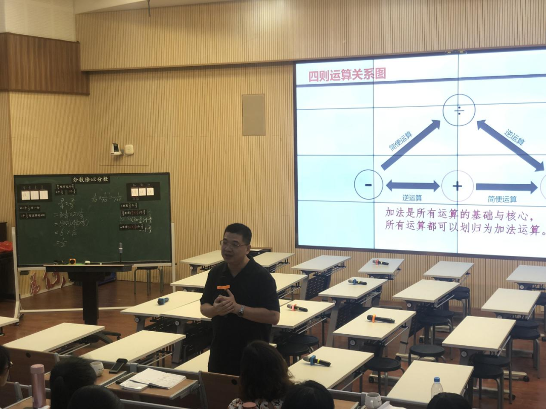 最后,吴伟华老师结合新课标及两节研讨课的实施情况,阐述了自己对“运算一致性”必要性的理解,他通过数的产生路径,将整数、分数、小数联系起来,分析了除法的本质——对计数单位的细分。吴老师强调:如何实施运算一致性教学?便是要让学生在课堂上感悟数的概念本质上的一致性;感悟运算与运算之间的关系;体会数与运算本质上的一致性。而如何在这条路上走得更远,吴老师告诉我们:“要以新课标为方向,以旧知为经验,用心渗透新理念。”