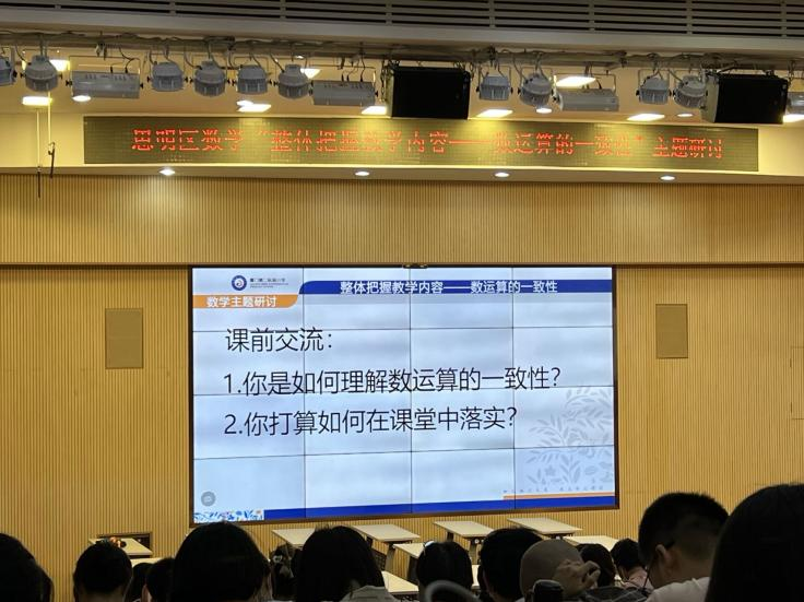 在活动一开始,吴伟华老师先抛出两个问题:1.你是如何理解运算一致性?2.你打算如何在课堂中落实?与会老师在问题引领下,开启了20分钟时间头脑风暴,写下自己的思考和疑问。随后几个学校老师分享了自己的理解与思考,更引发大家的热议,更加聚焦了今天研讨的方向。