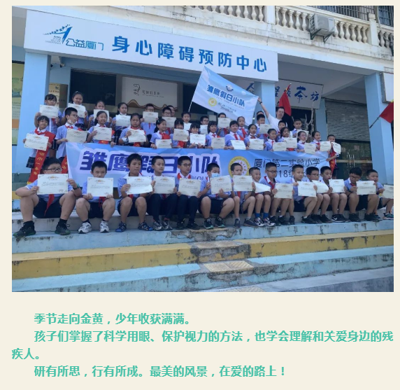 伴着初秋的暖阳和凉爽的微风,9月25日上午,厦门第二实验小学总校2018级2班的“雏鹰假日小队”来到了厦门身心障碍预防中心,一场有意义的活动拉开了序幕!