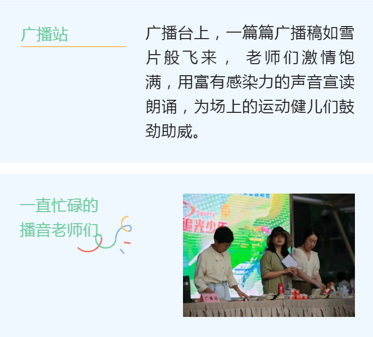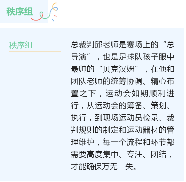 又是一年秋日和煦,厦门第二实验小学的操场上,秋季运动会正进行着精彩纷呈的比赛。矫健的运动员们在运动场上挥洒汗水,而运动员背后也有一群人在坚持着。他们的名字不曾出现在获奖名单上,可他们却一丝不苟地忙碌在台前幕后,他们的身影令人动容。让我们一起来认识他们吧!