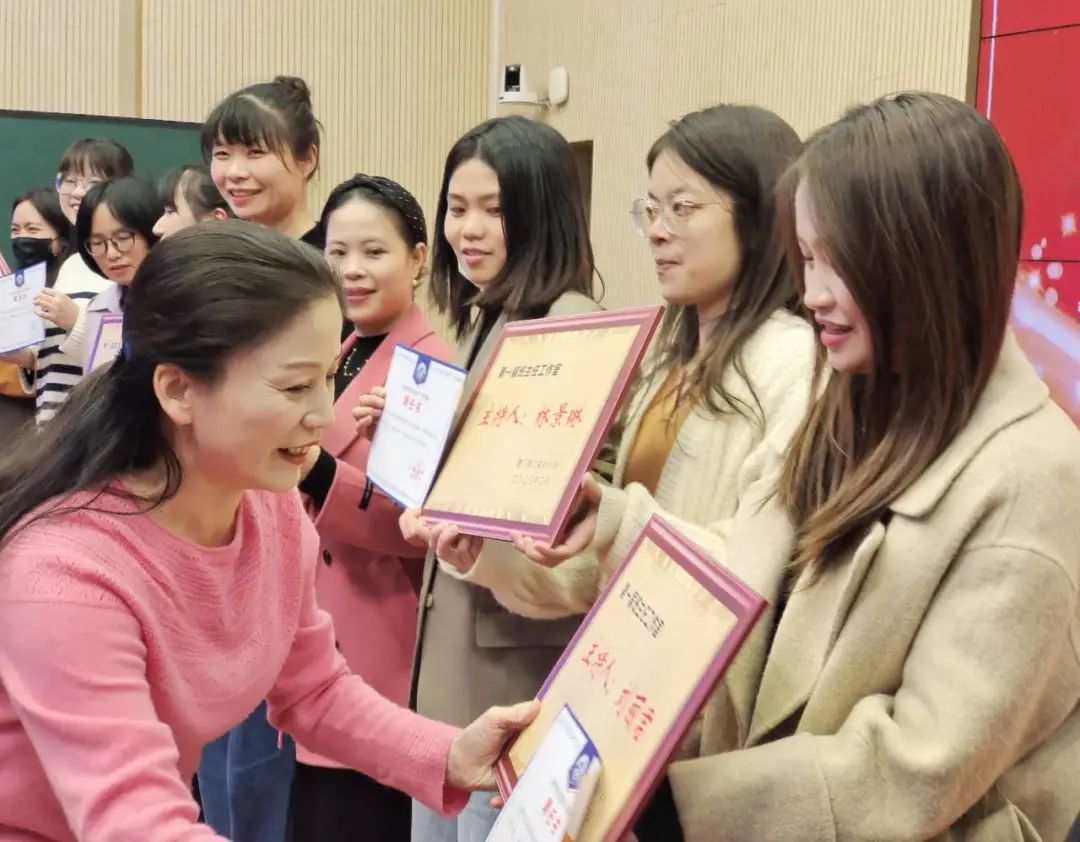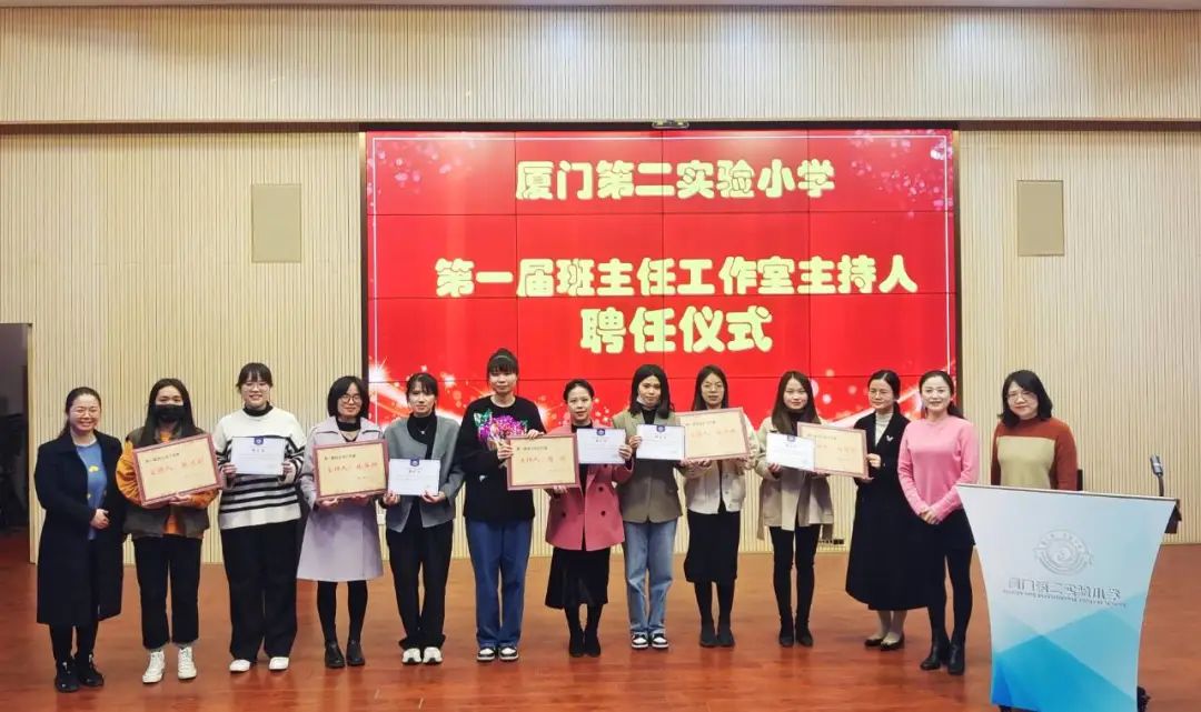 开学两周以来,经过老师们的报名自荐,学校学生发展部、教师发展部、校级领导的认真审核,最终确认成立八个校级班主任工作室主持人及研究课题。2月24日下午,在班主任工作室成立的启动仪式上,陈校长和李副校长为八位工作室主持人颁发了牌匾和聘书。熠熠发光的金色牌匾如航灯点亮了新的责任和担当,指引着新的航程和方向。