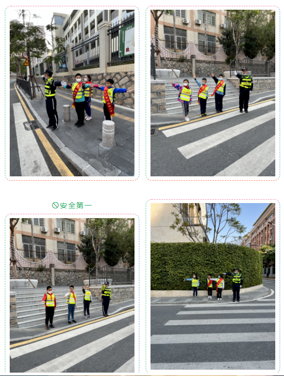 小交警”们井然有序地扬起小手,提醒路人践行“红灯停,绿灯行”的交通规则,做到学以致用、服务他人。