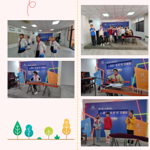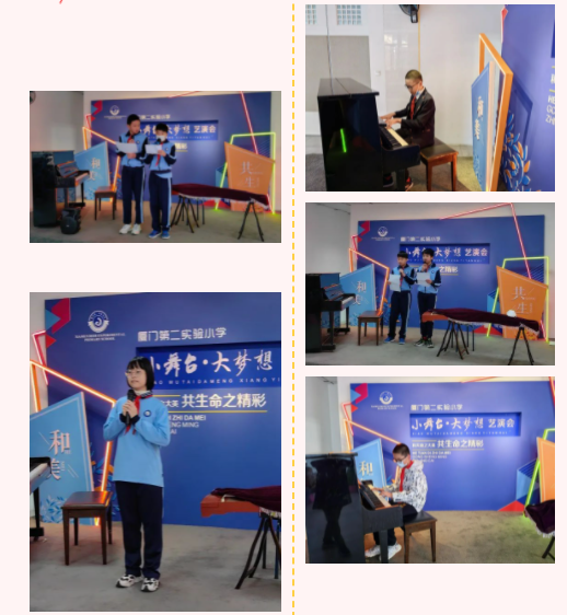 厦门第二实验小学小舞台始建于2013年,迄今已有10年的历史了,10年来,小舞台经过了数次改建,迎来了一批又一批的孩子,舞台虽小,却为孩子们搭建了一个展示自我的平台,丰富了同学们的校园生活,营造出一种积极向上、健康快乐、温馨友善的文化氛围,提升了同学们校园生活的幸福指数。真可谓:“精彩纷呈小舞台,才艺展示大天地”。