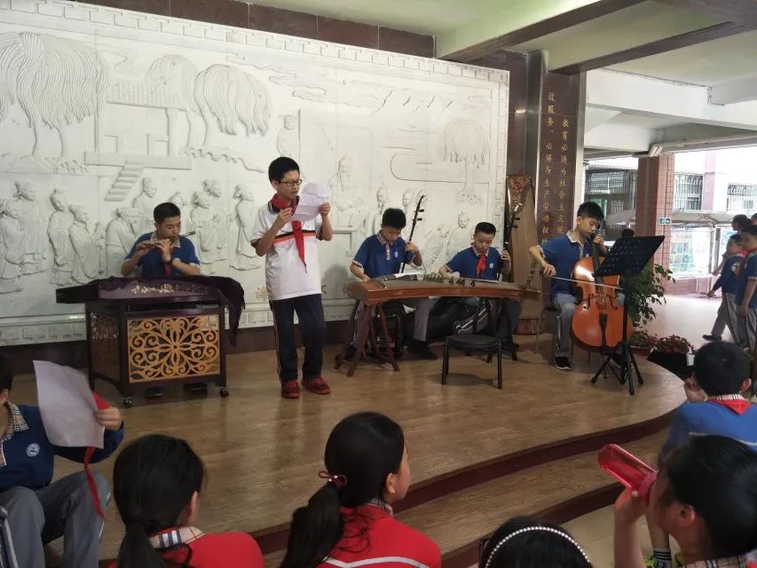瞧,他们多开心啊!这是2011级的同学当年小舞台表演的照片,如今他们都是高三的学生了。