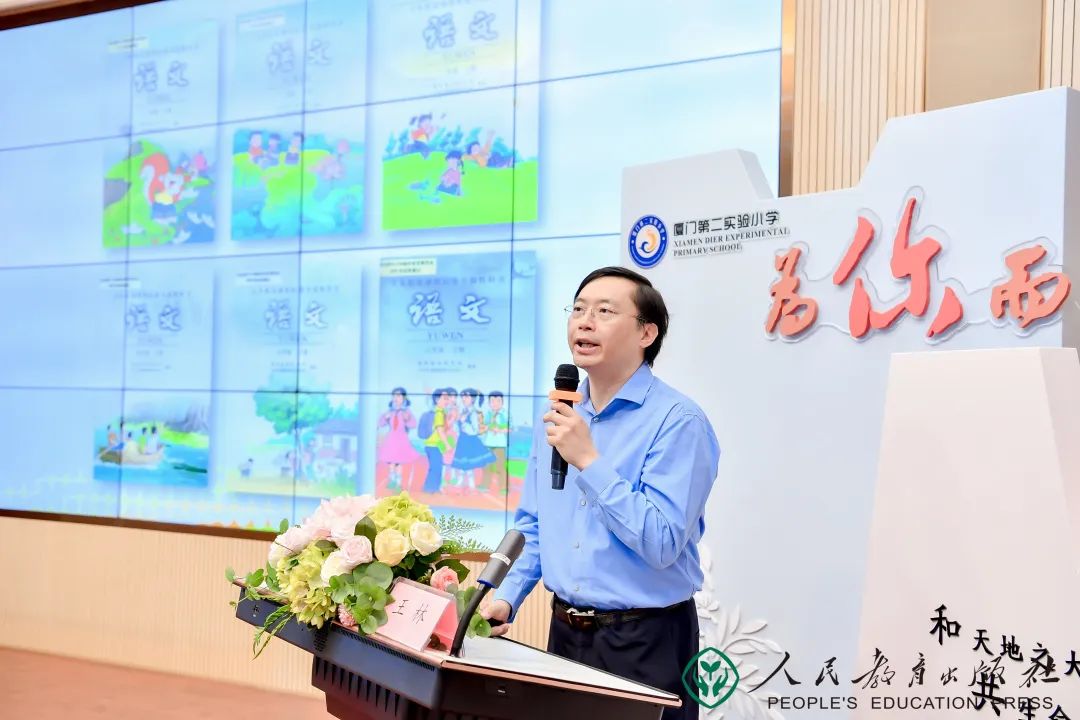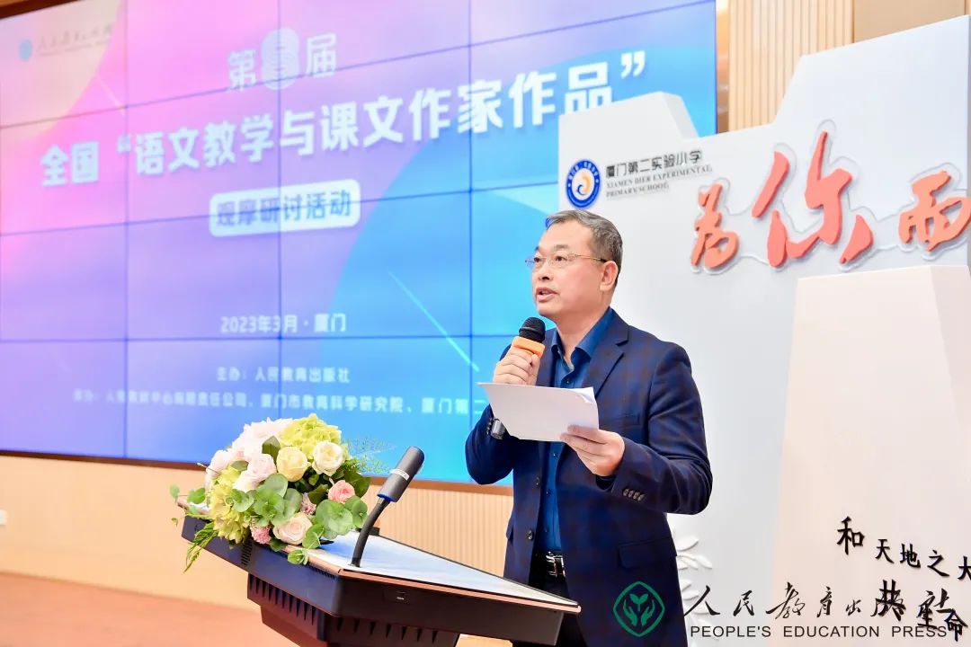 厦门市教育科学研究院基教室副主任叶金标老师感谢人教社举办此次观摩研讨活动,立足文本,关怀学生,推动教师成长,并祝愿本场活动取得圆满成功。