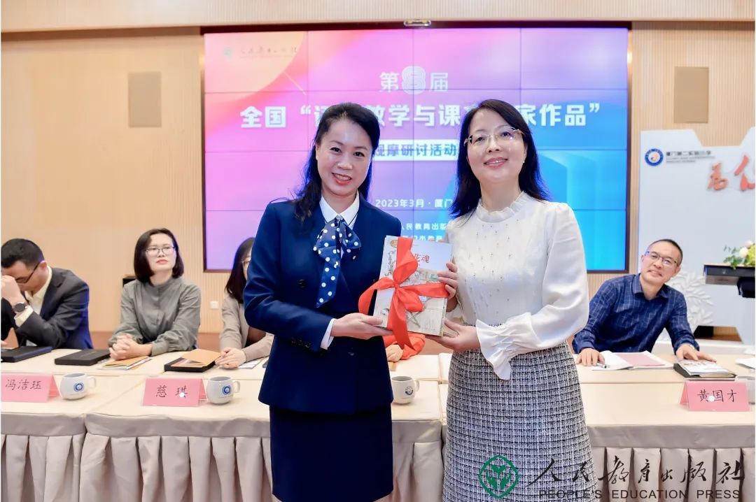 更惊喜的是,人民教育出版社还为厦门第二实验小学准备文质兼美的《课文作家作品》系列图书70多本,陈燕华校长代表学校接受赠书,并表达这份礼物意义非凡,将格外珍视。