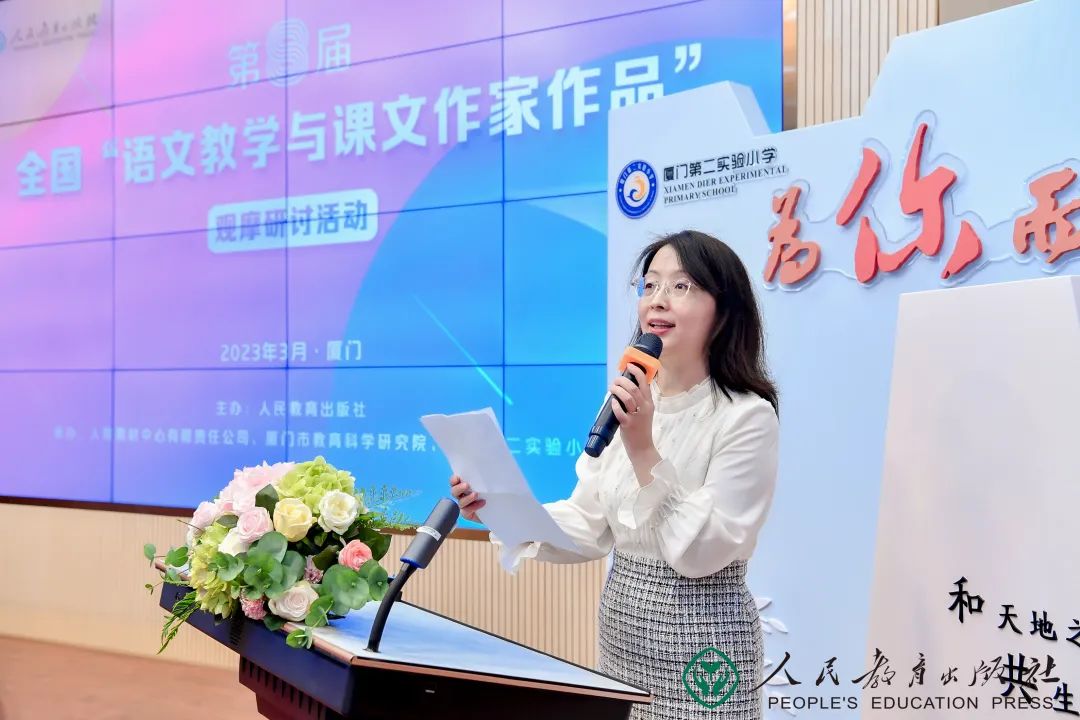 为了让一线老师在教学中更好地理解作家创作意图,用好统编教材。人民教育出版社从2016年起开展了“语文教学与课文作家作品”的一系列观摩研讨活动,邀请教材中的优秀作家、全国知名教师和广大一线教师面对面,通过讲座和课例帮助老师们走近作家作品,推广优秀的教学经验。本届活动由人民教育出版社主办,由人教教材中心有限责任公司、厦门市教育科学研究院、厦门第二实验小学承办,“书香博士”智慧阅读公益平台协办,由厦门第二实验小学徐舒婷老师主持。