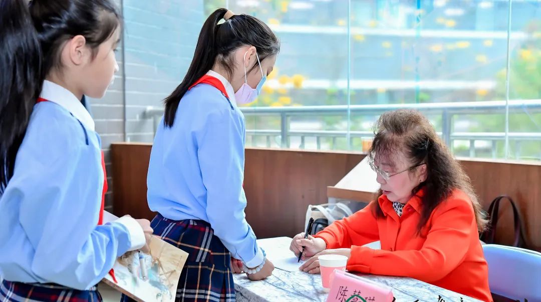 课后,《梅花魂》的作者陈慧瑛老师和孩子们互动,殷殷话语中寄托了对孩子们的期待,慈祥温暖的笑容深深地镌刻在孩子们的心中。