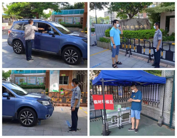 按照演练预案,我校某教职工驾车在入校时,出现体温超过37.2℃,保安立即报告校医和带班行政,并指挥教职工将车停在校外停放区,由校医带到临时隔离区域进行二次体温测量,校医按照防疫流程进行排查上报。之后立即安排消毒人员对相关区域进行消毒。