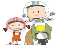 请积极响应文明交通倡导,使用电动自行车接送孩子时请佩戴安全头盔,为孩子筑起第一道“安全防线”,为孩子做好榜样。