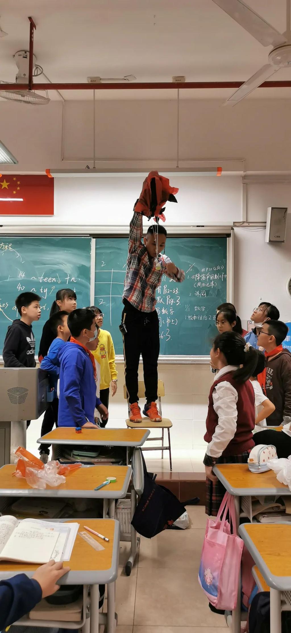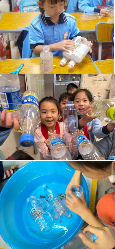一年级“空气炮”大作战、二年级“水动力船”、三年级“平衡小鸟飞起来”、四年级玩转铁丝陀螺、五年级自制降落伞、六年级投石攻城车,简单的材料搭配上孩子们的创意,有趣的小制作充分激发了孩子们学习欲望。