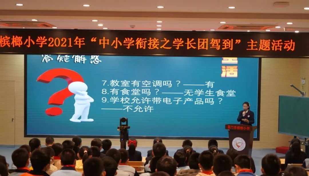 2021年12月30日,作为毕业季系列活动传统内容的“学长团驾到”主题活动如约而至。今年槟榔小学邀请到了来自槟榔中学的“全能学霸”高晨馨学姐以及帅气有才的秦朗学长,两位优秀的学姐学长再次回到可亲可爱的母校,毫无保留地将自己的感受和经验分享给六年级的学弟学妹们,以帮助他们提前做好一些准备,规避一些可能出现的“弯路”。
