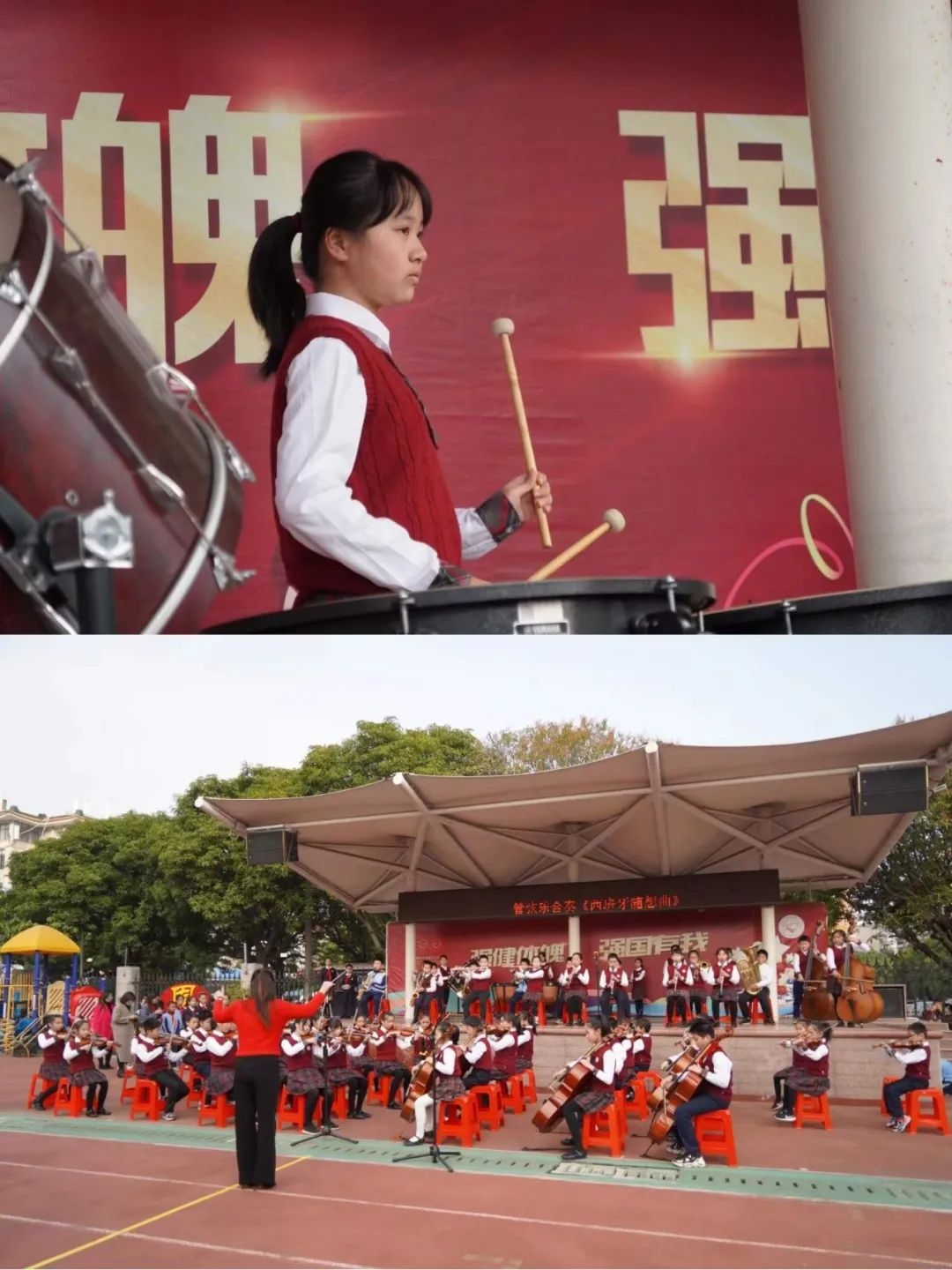 社团老师们和孩子们前期做了精心准备,孩子们用积极饱满的热情点燃新年的钟声,各社团带来了精彩的表演。迎新活动以舞蹈《一米阳光》拉开帷幕,校舞蹈社团的同学们尽情地展示自我,跳出激情,舞出了精彩,以优美的舞姿展示着青春的魅力。中国有一种历史悠久的音乐被称为“中国音乐史上的活化石”,它就是南音。“为将病毒来清零,心无顾虑冲头前,坚守岗位尽责任,奋战多日无歇停”以传统的形式向坚守在“疫”线的“大白”们致敬,悠远古朴的南音飘荡在校园上空,将现场的师生引入古乐的意境当中。