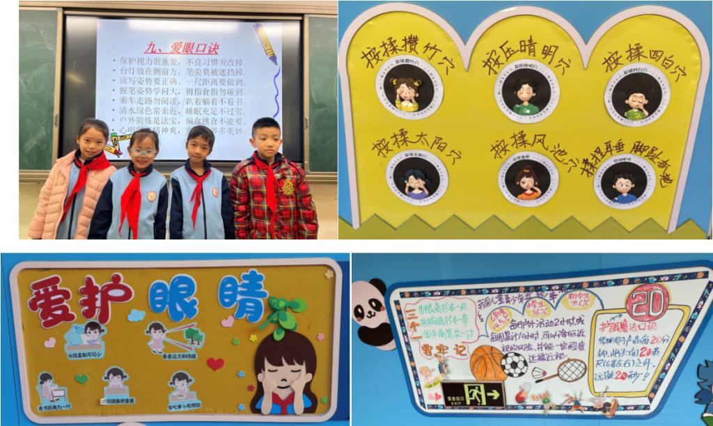 保护眼睛,不仅要知道怎么做,还要落到行动上。只有知和行统一起来,才能真正保护好双眼。为了提醒自己保护好眼睛,同学们制作小书签、提示牌,把它们放在文具盒或夹在书里。有的小队编了爱眼口诀,方便大家记忆。大家还通过布置外墙、板报的方式来宣传保护眼睛的重要性。