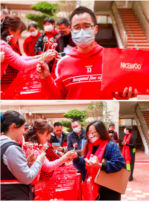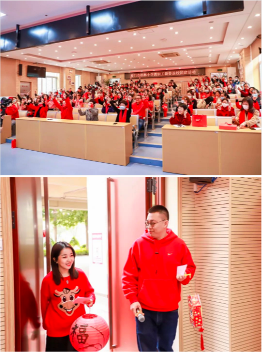 2022年2月14日,厦门市槟榔小学举办了教师新春返校活动。槟小教师工会为老师们准备了“一师一墩”的礼物,教师们也以每人身上一抹朝气蓬勃的红,汇聚成了槟小教师教育热情般“槟榔红”的亮丽风景线。