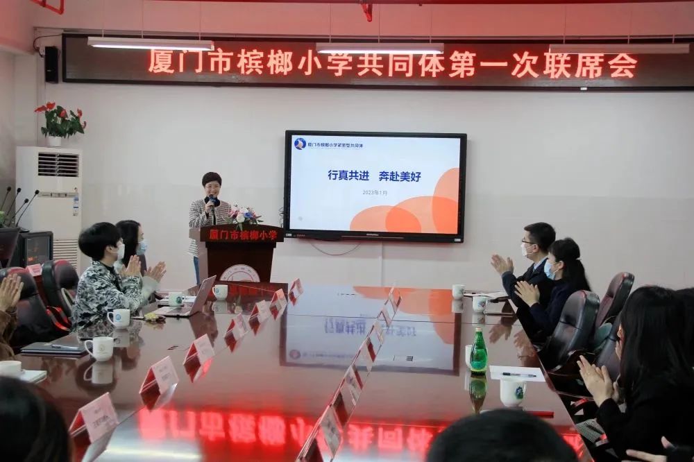 2023年1月13日上午,厦门市槟榔小学教育共同体召开了第一次联席会议。槟榔小学、湖滨小学和滨海小学全体校领导及行政代表参加此次会议。