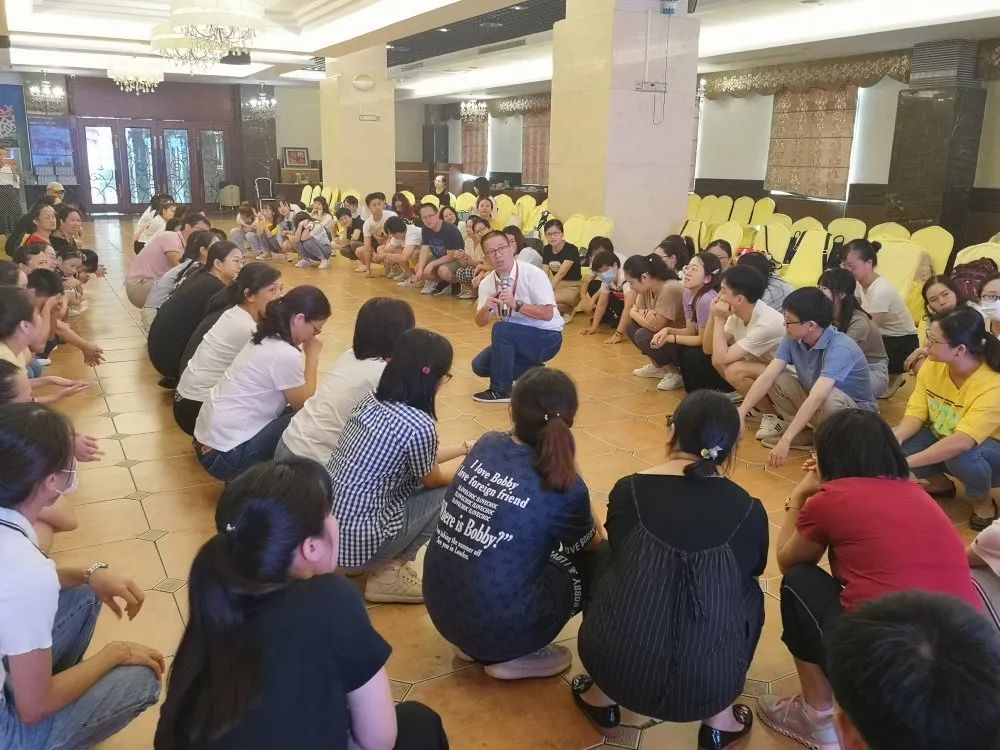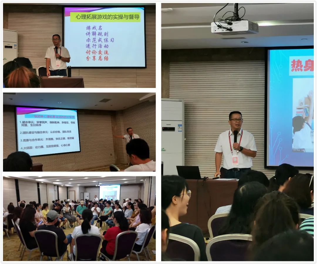 第二天开展的是“班级团体心理拓展的实操培训”,相较于第一天完全浸入式的体验互动,实操培训更注重班主任、心理或体育老师等易于开展学生团体心理拓展的老师落实活动目标的规范和技巧。