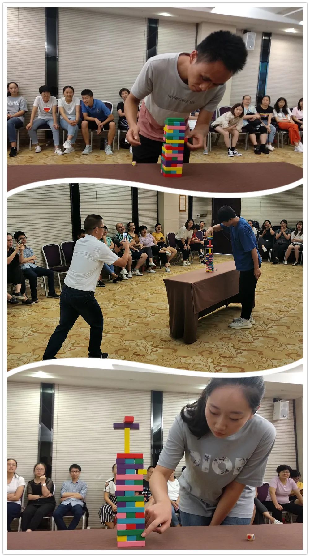 在体验了罗老师推荐的法宝——心理沟通工具《幸福时刻》之后,槟小教师们又通过“乾坤大挪移”、“吸管传杯”等活动的感受与解析,深入学习了心理拓展的实操技术。