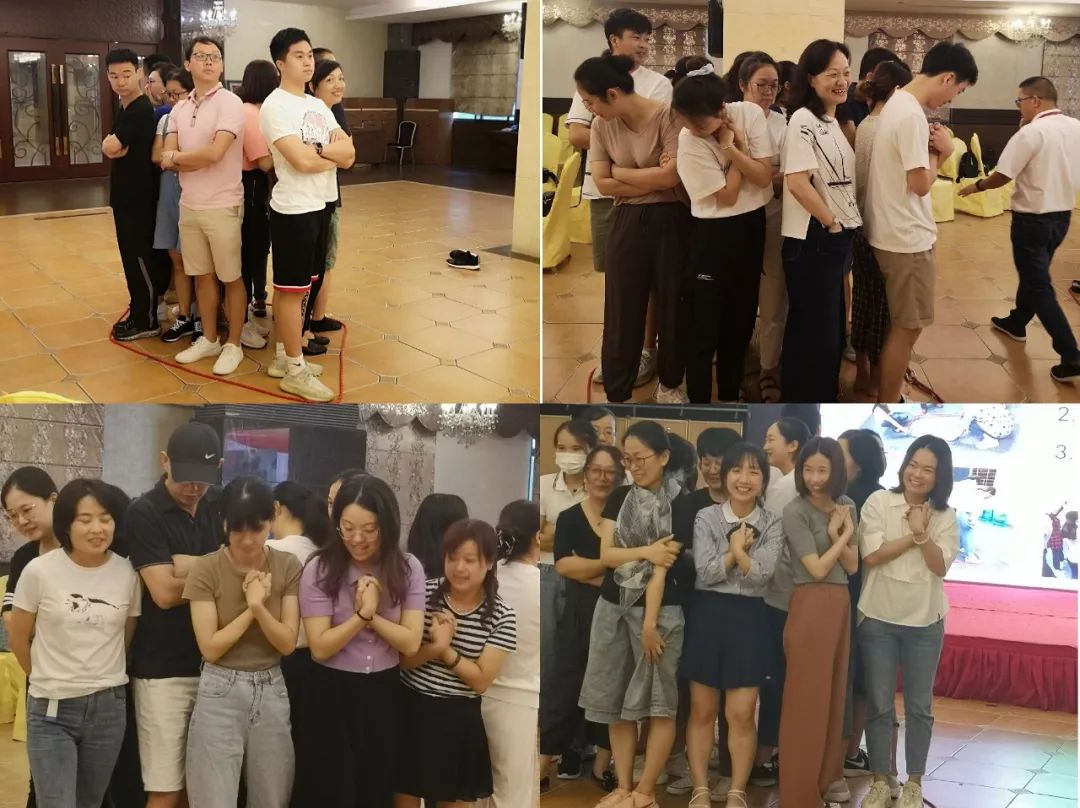 破冰融合单元包括“倒转乾坤”、“快速握手”、“孙悟空”、“寻找同盟”、“生日排序”5个小游戏。一个个小游戏打破了人与人之间的隔阂,创造了良好的氛围,使每个人快速融入到团队中。游戏还考察了大家的配合度和敏捷程度,许多人在失败中坚持不懈,在失败中调节心态,改变策略。热闹欢乐的破冰游戏增进了大家的友谊,默契度不断提升。