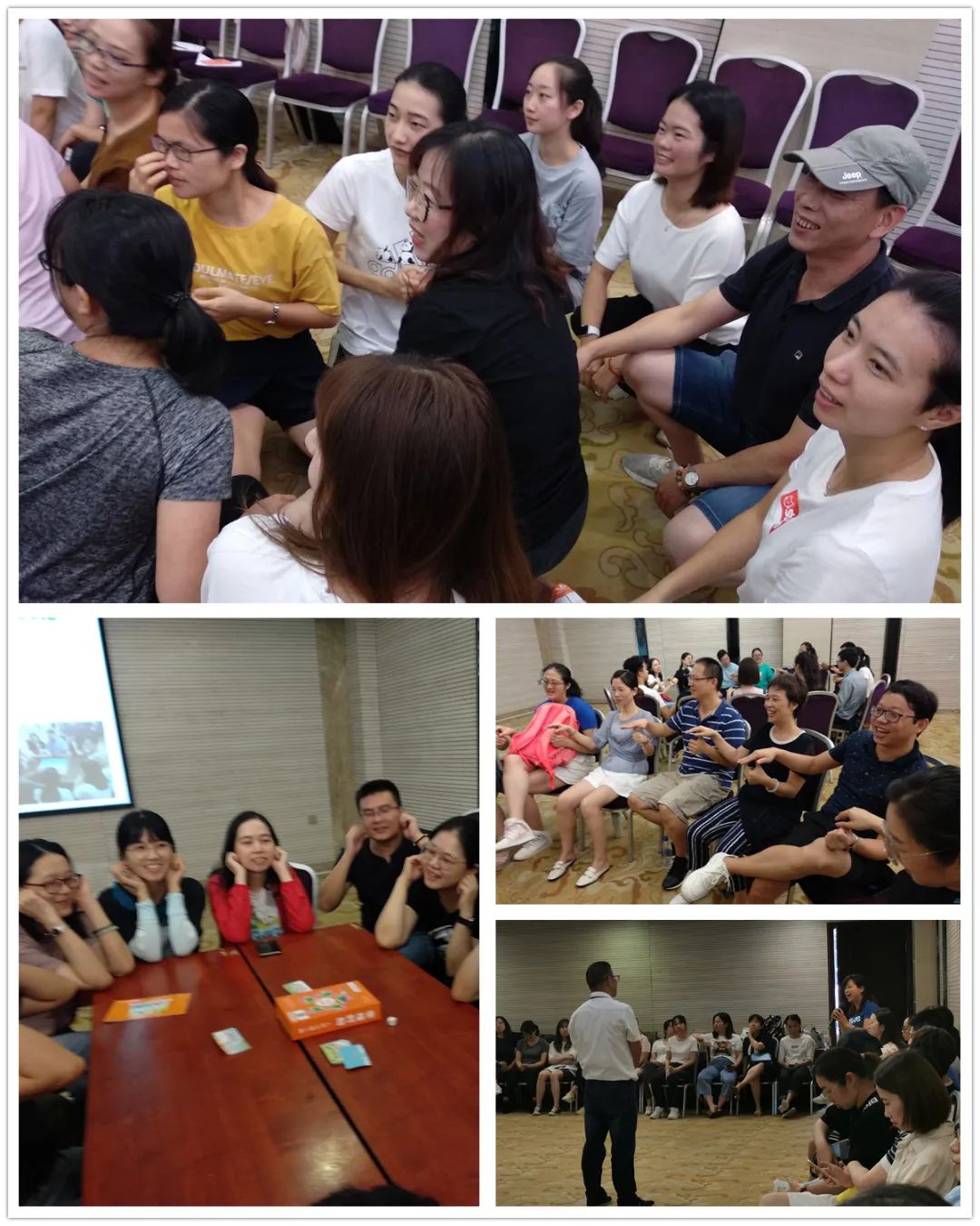 在简短的准备后,槟小四位教师代表分别就“植物人”(专注力)、“钱多多”(快速反应)、“耳听八方”(倾听能力)、“火眼金睛”(观察能力)四项团队心理拓展活动开展了现场的“片段教学”。槟小教师们优秀的教学水平和风趣幽默的现场把控能力获得了罗老师的肯定。