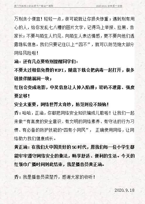 本周,槟小红领巾广播电台的小主播们就以“网络安全太重要”为题,