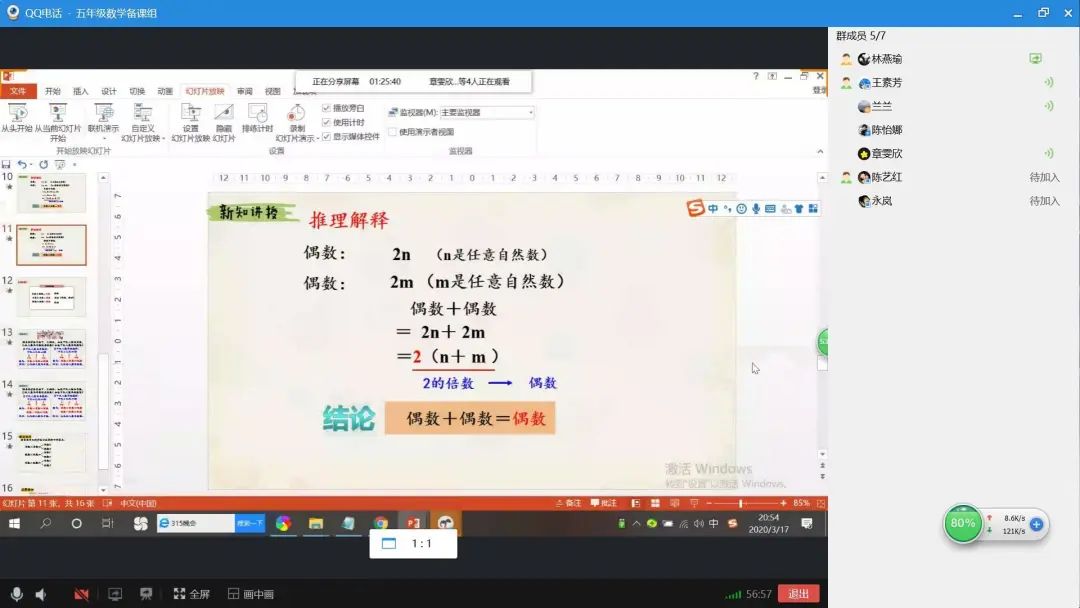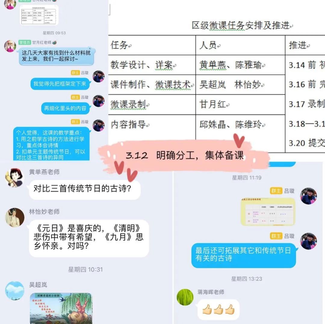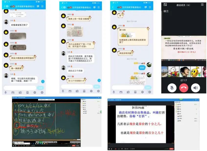 疫情下的网上教研给我们带来很大的挑战,也激励我们不断教学研究。各备课组每周都会提前制定下周的计划,以周为计划,备课组提早分工,准备“教学课件、微课资源、教学讲义、课时作业”的课时资源包,并上传供同伴先行备课。然后利用新课前一天的线上教学结束后的一个小时进行集体二次备课,由课时负责人组织利用“语音直播+分享屏幕”进行集体备课,过程中实时提出建议,及时修改,形成备课组教学资源确定稿。每次教研时间多达两个多小时,老师们的用心教研备课,为的是孩子们能在线上学到更加扎实的知识。一节20分钟的直播课凝聚多位老师背后几天的心血,孩子们你们感受到老师们的用心了吗?