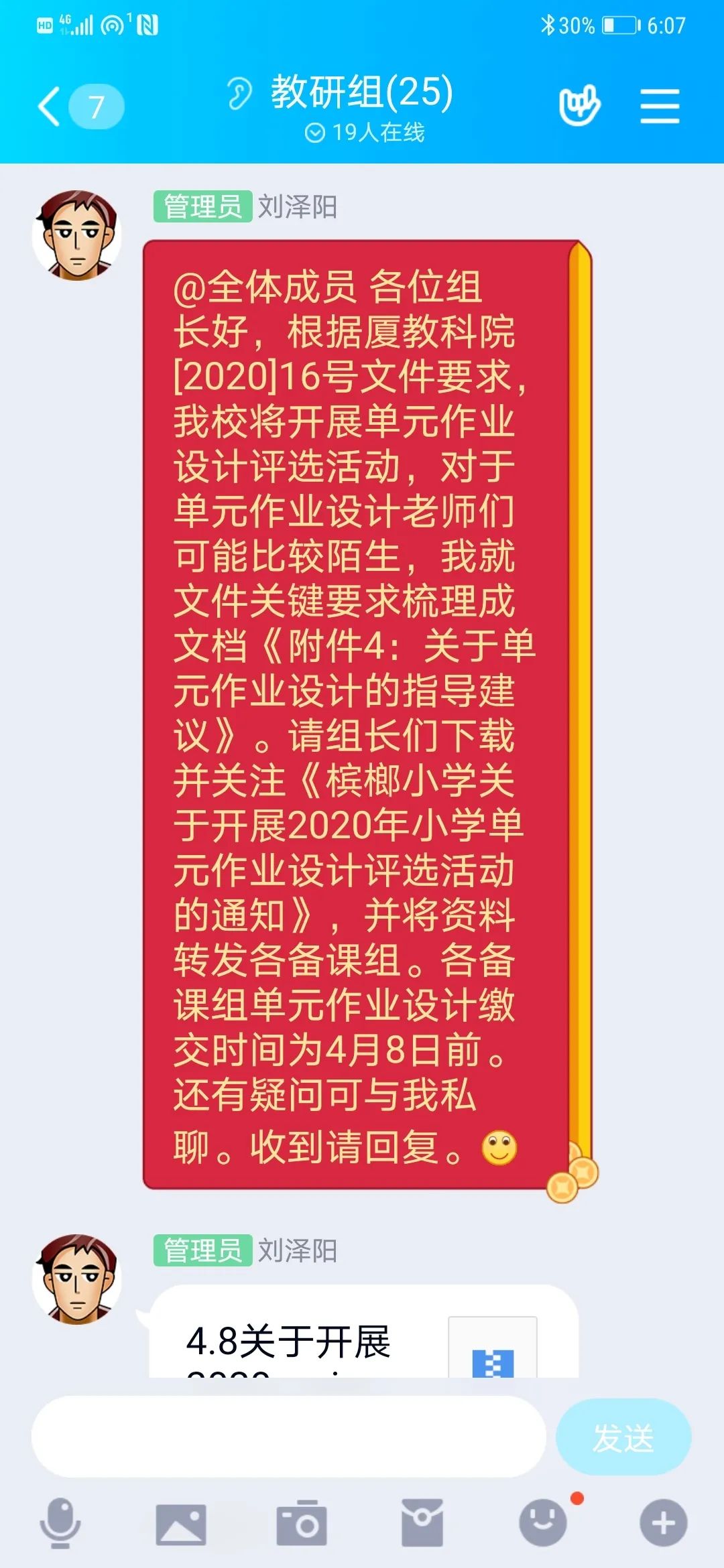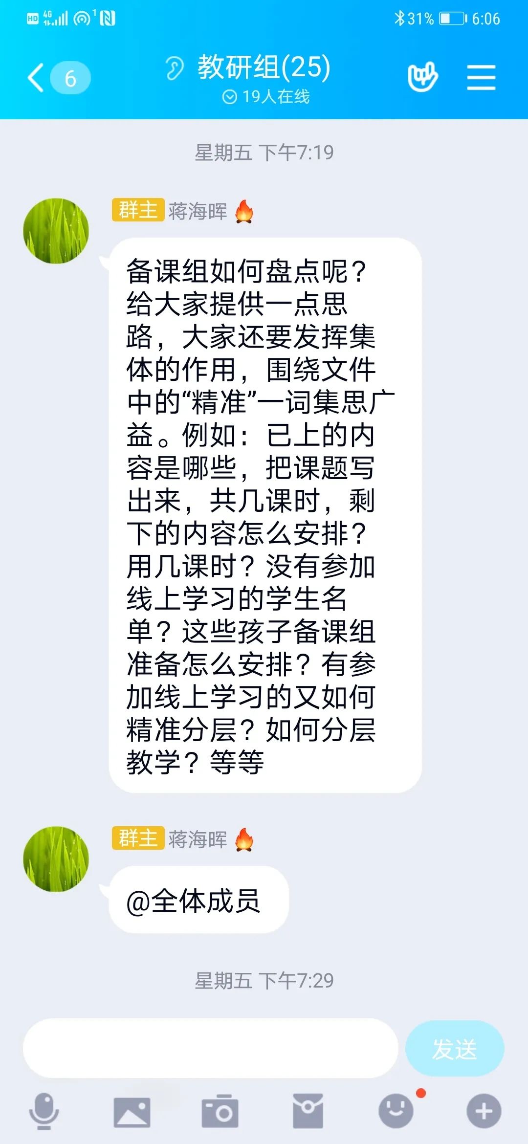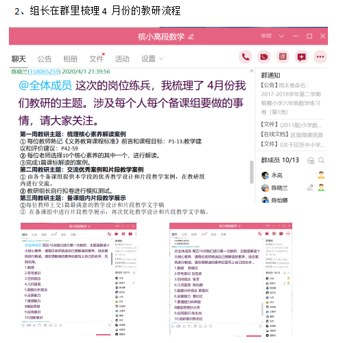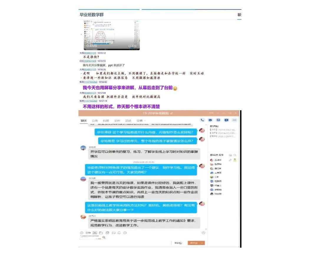 在一线老师们为了保障教学质量积极教研和提升的同时,学校行政们也在通过沟通协调、关心指导来帮助老师们更好地克服困难,一起为学生构建良好的线上学习环境而努力。