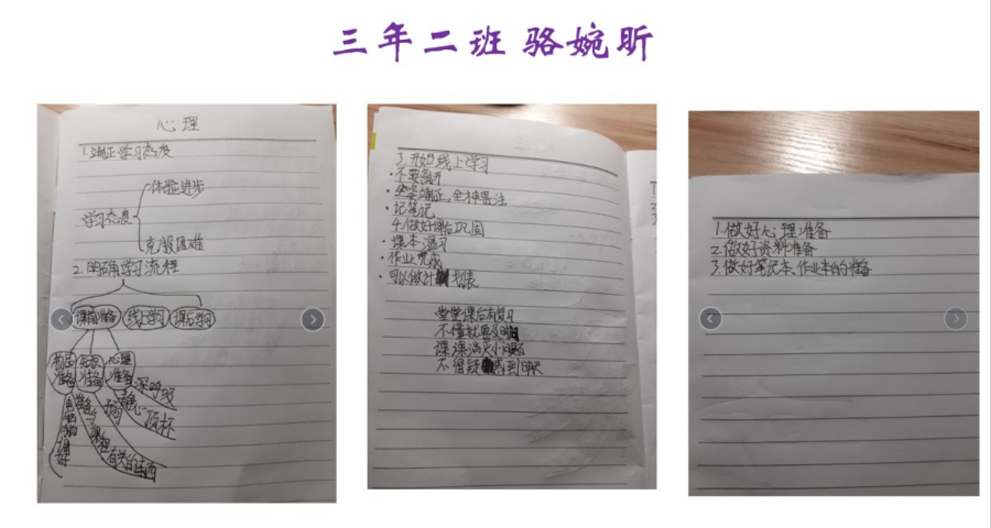 上课认真做笔记的习惯在线上教学还能保持吗?那是当然!来看看咱们优秀的槟小少年们在英语和心理课上丰富多彩的笔记吧!
