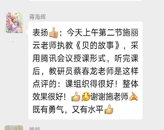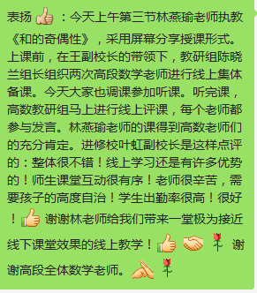 在学生成长的同时,老师们的付出也得到了家长和领导的肯定。线上教学和研讨的方式得到了不少的赞扬,多次开课也反响良好。