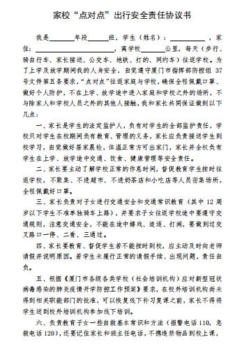 2.返校途中尽量不乘坐公共交通工具,有条件的尽量由家长开车接送或就近走路上学。