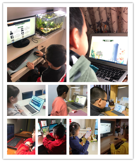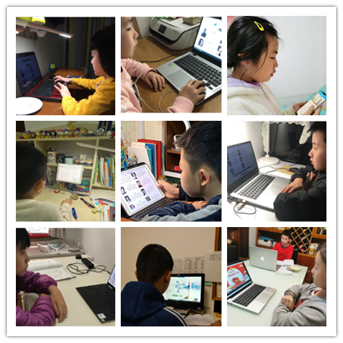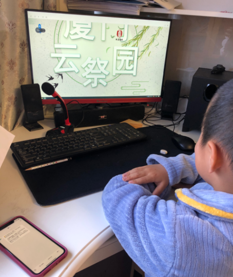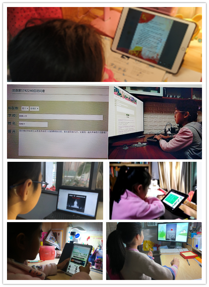 同学们参加线上班队课,开展网上祭英烈活动。