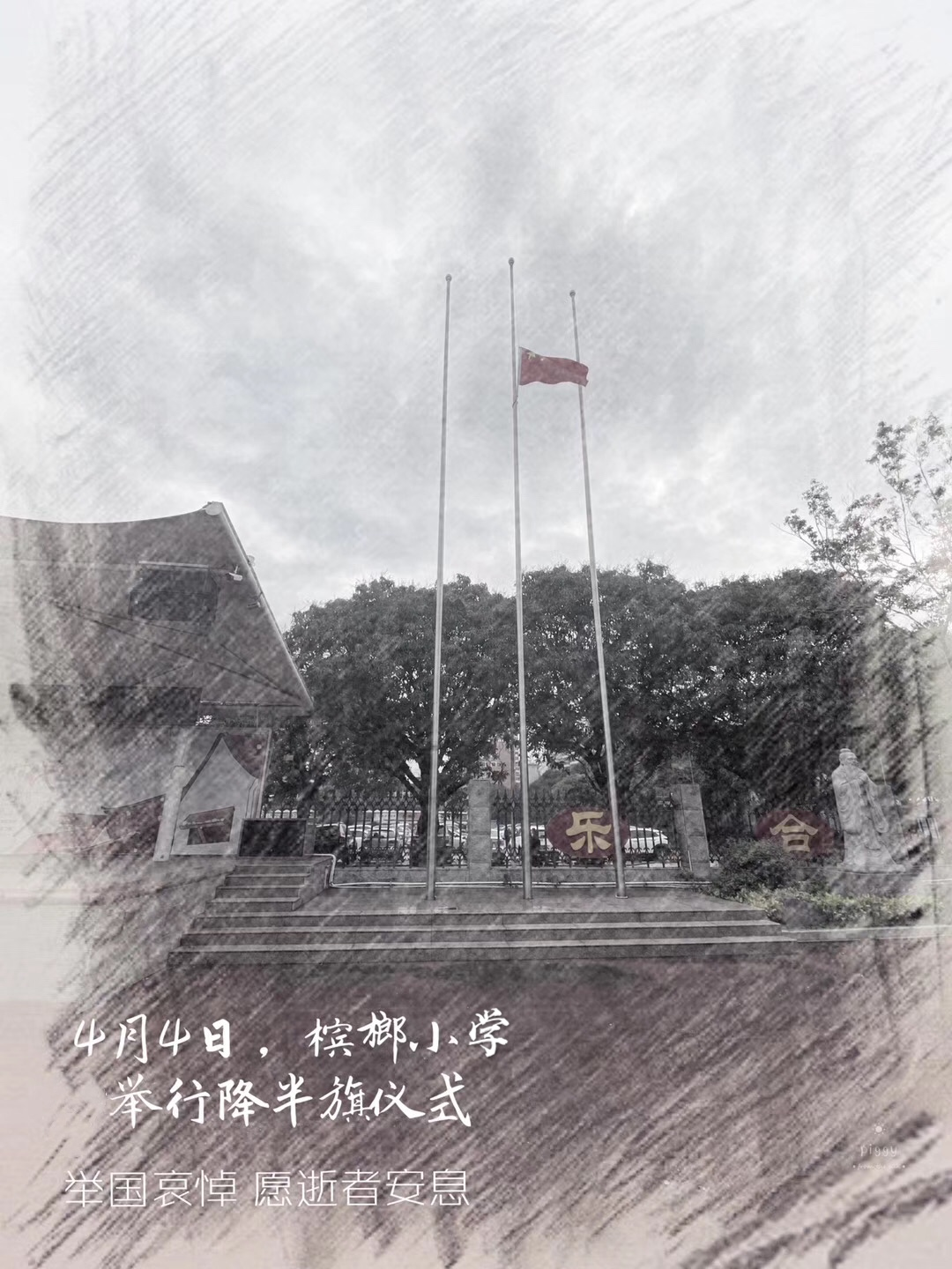 2020年4月4日,厦门市槟榔小学下半旗志哀。