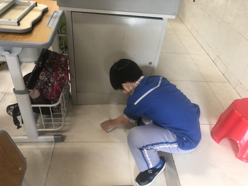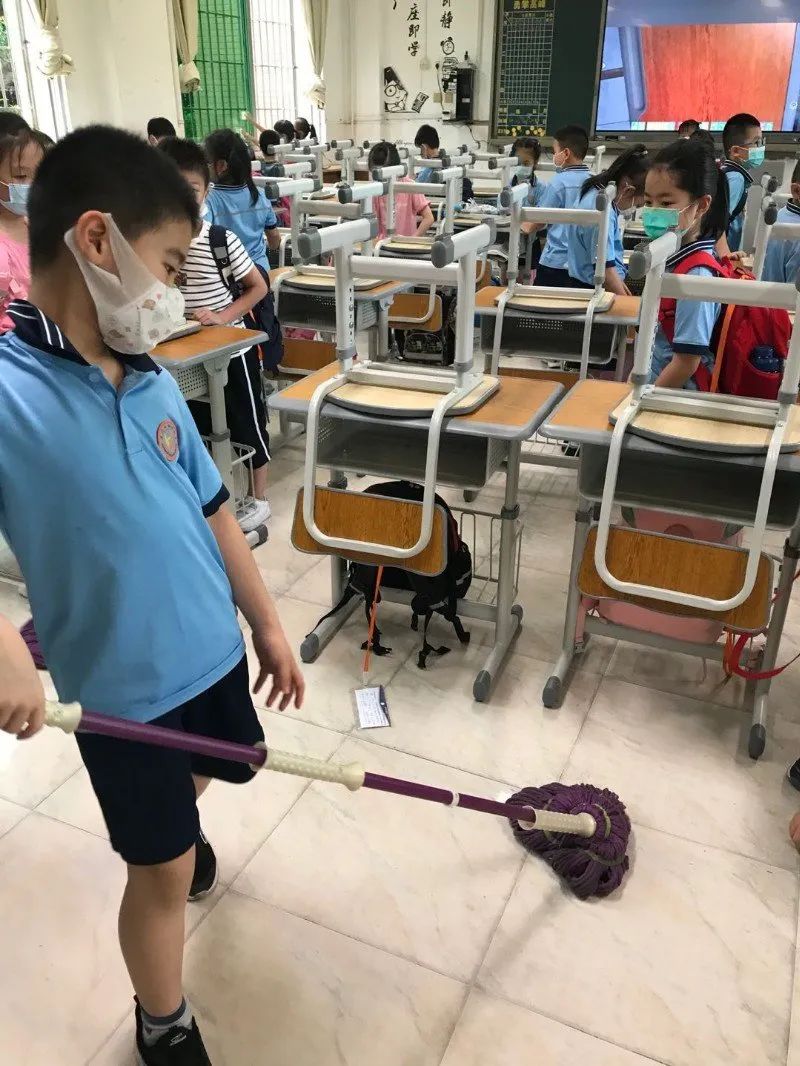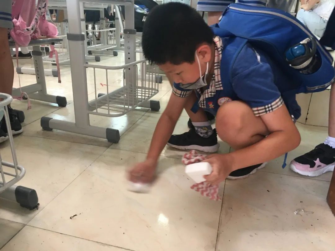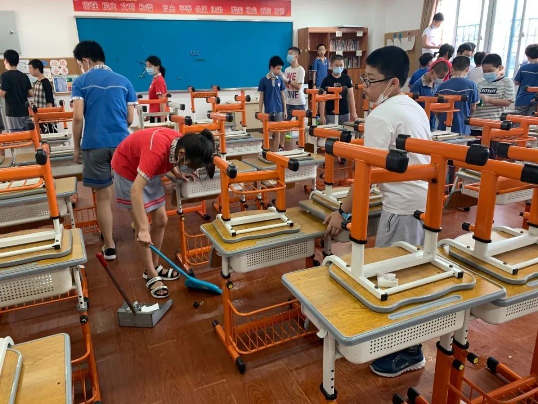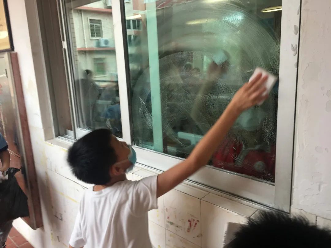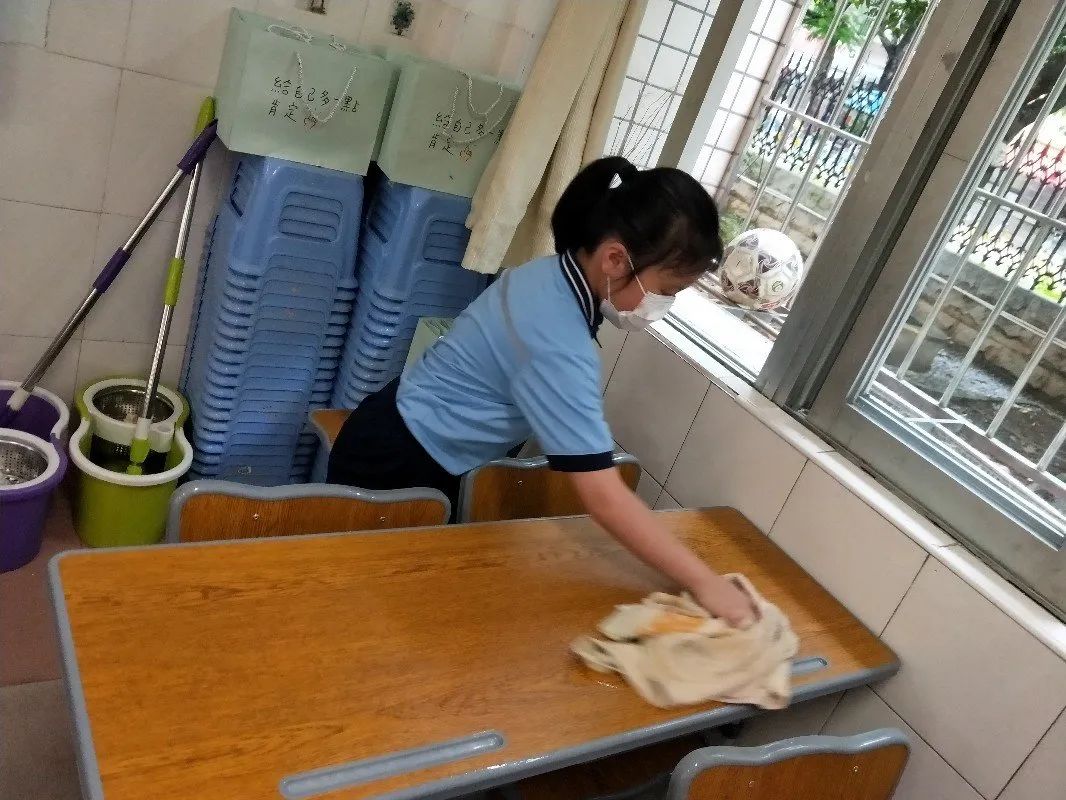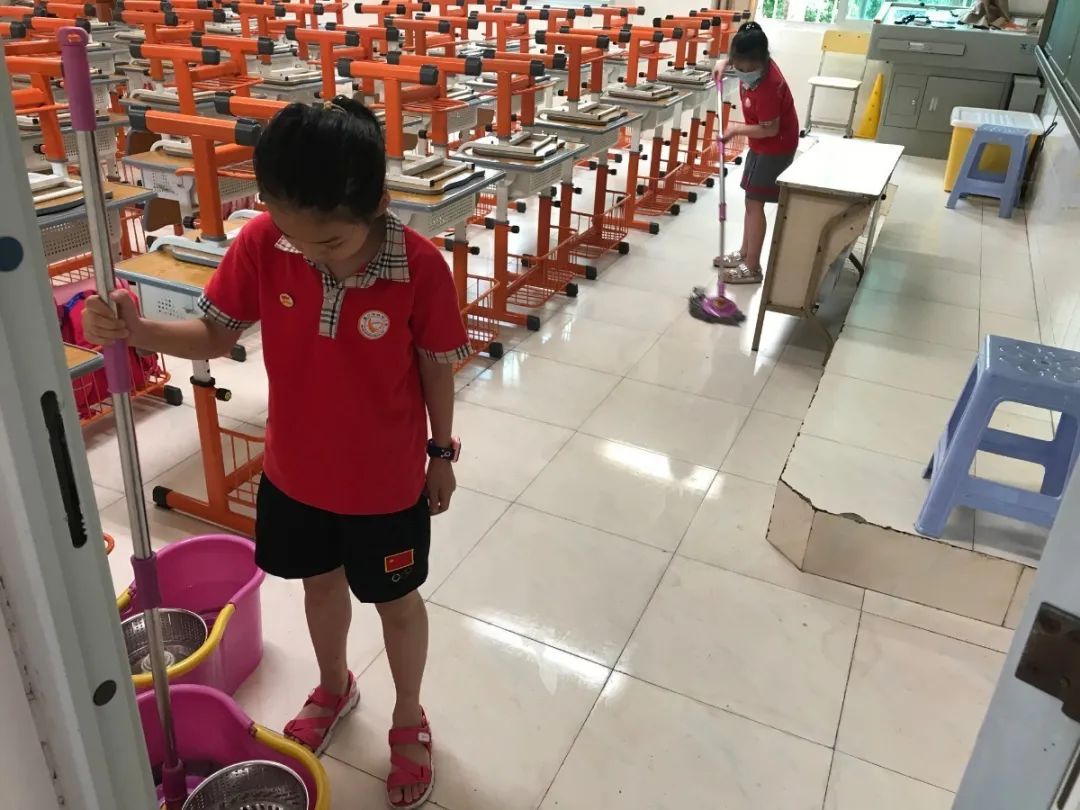 在班会课中各班学习的劳动技能,应当马上应用于实践——这不,下午第二节课起,全校组织了如火如荼的大扫除活动。