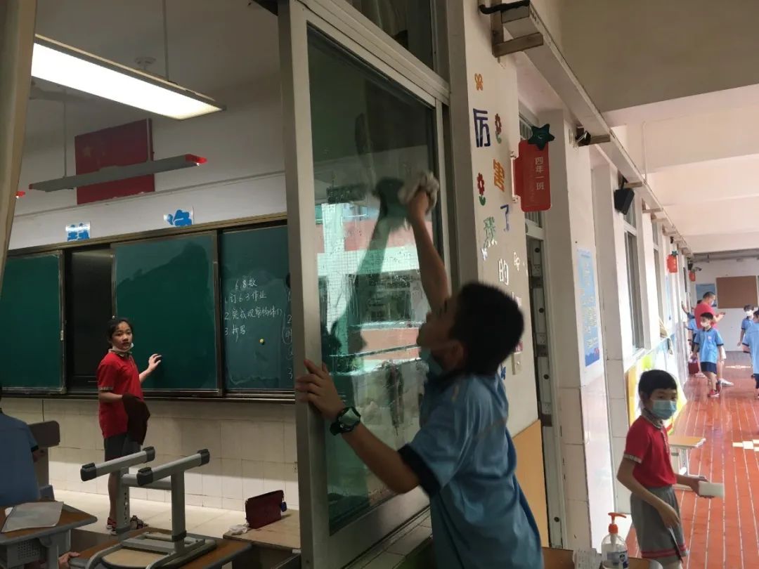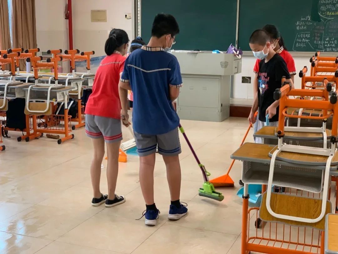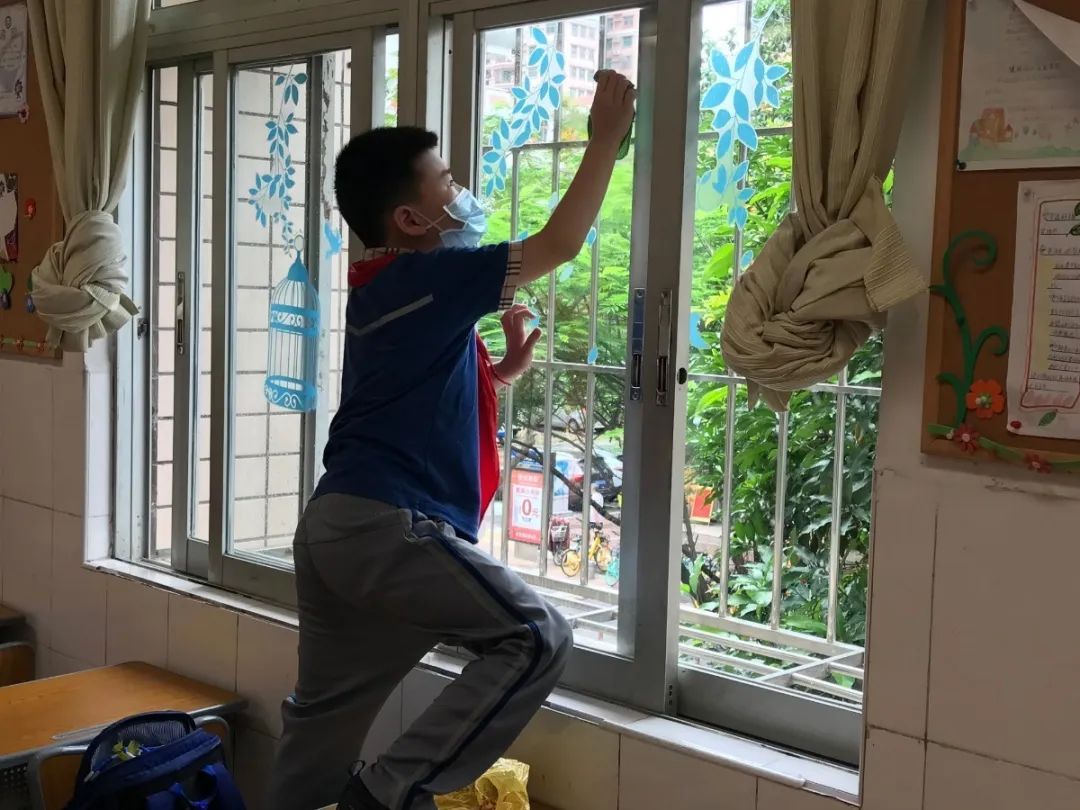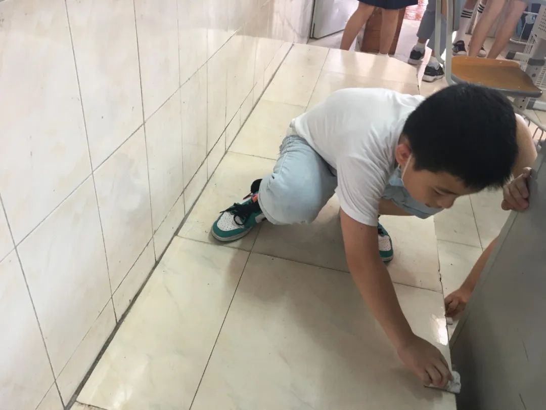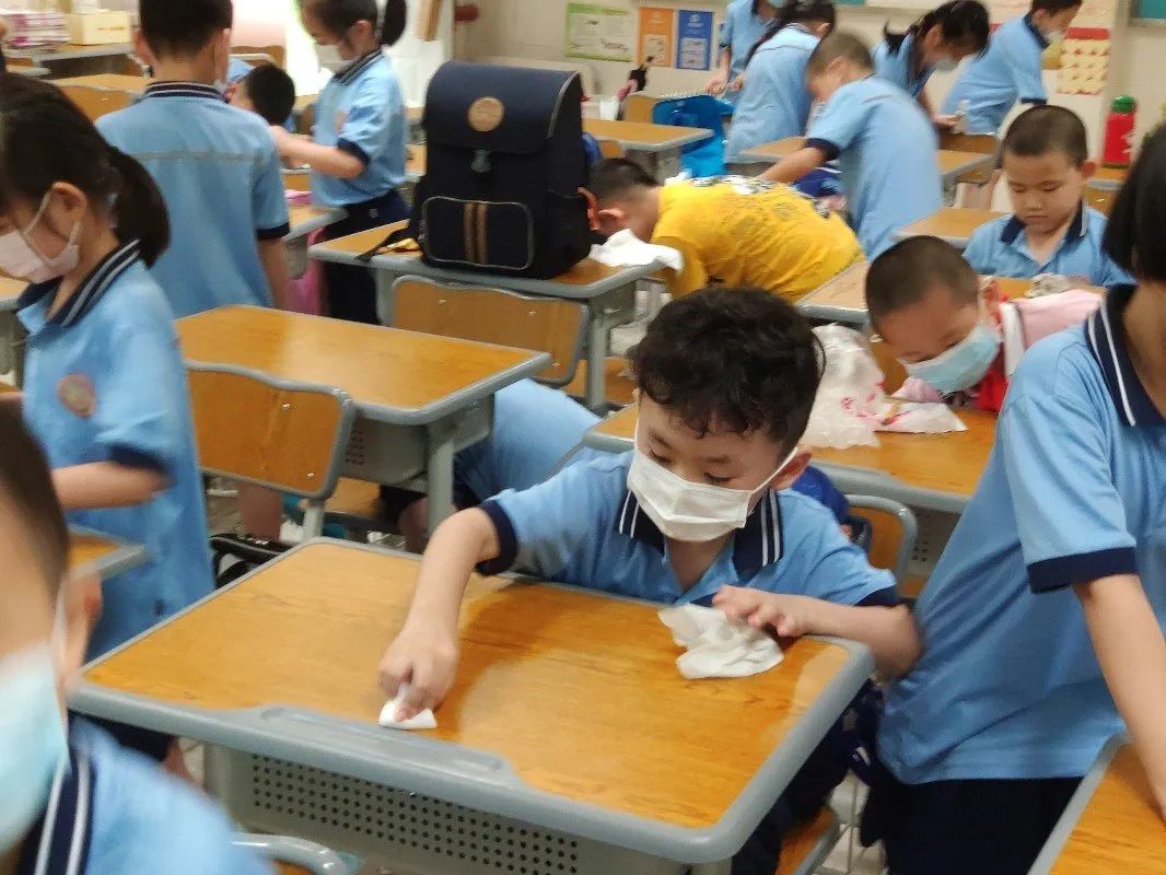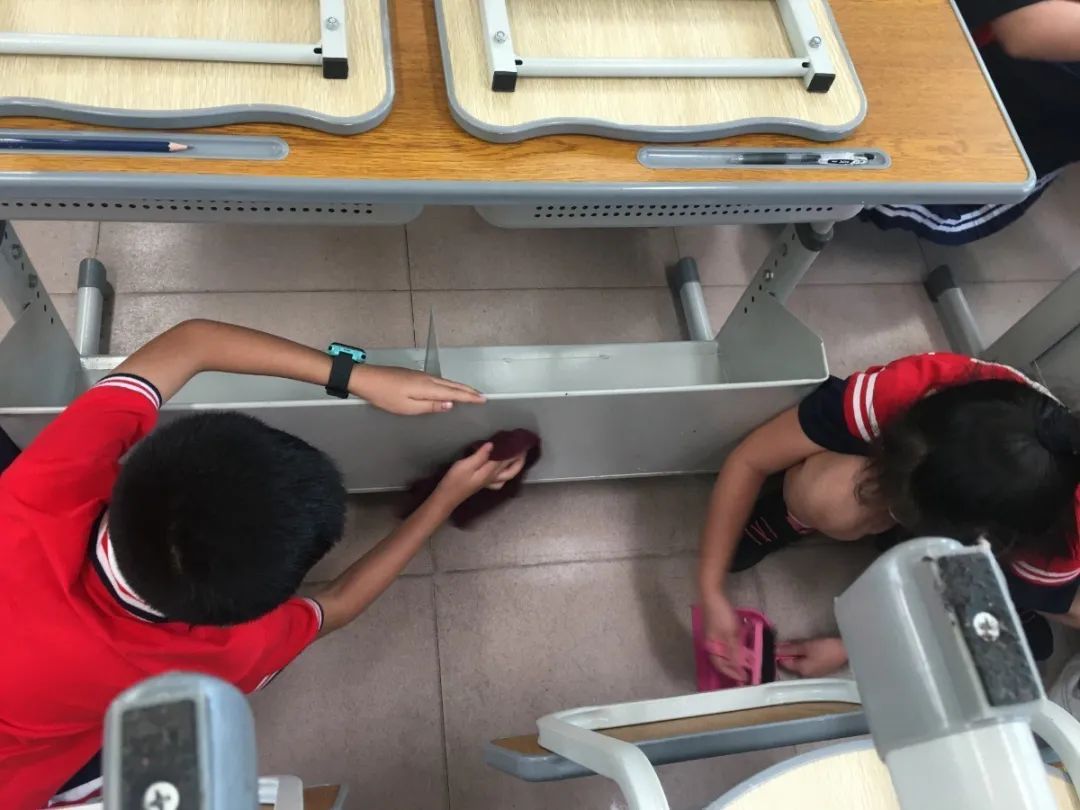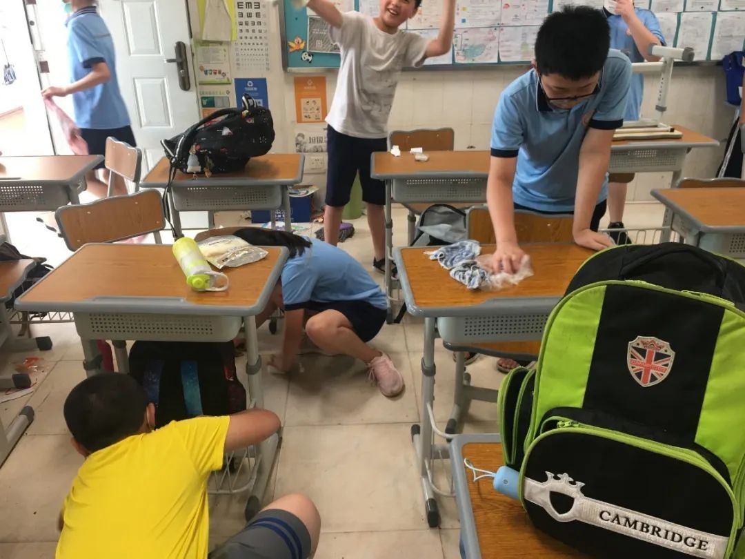 在班会课中各班学习的劳动技能,应当马上应用于实践——这不,下午第二节课起,全校组织了如火如荼的大扫除活动。