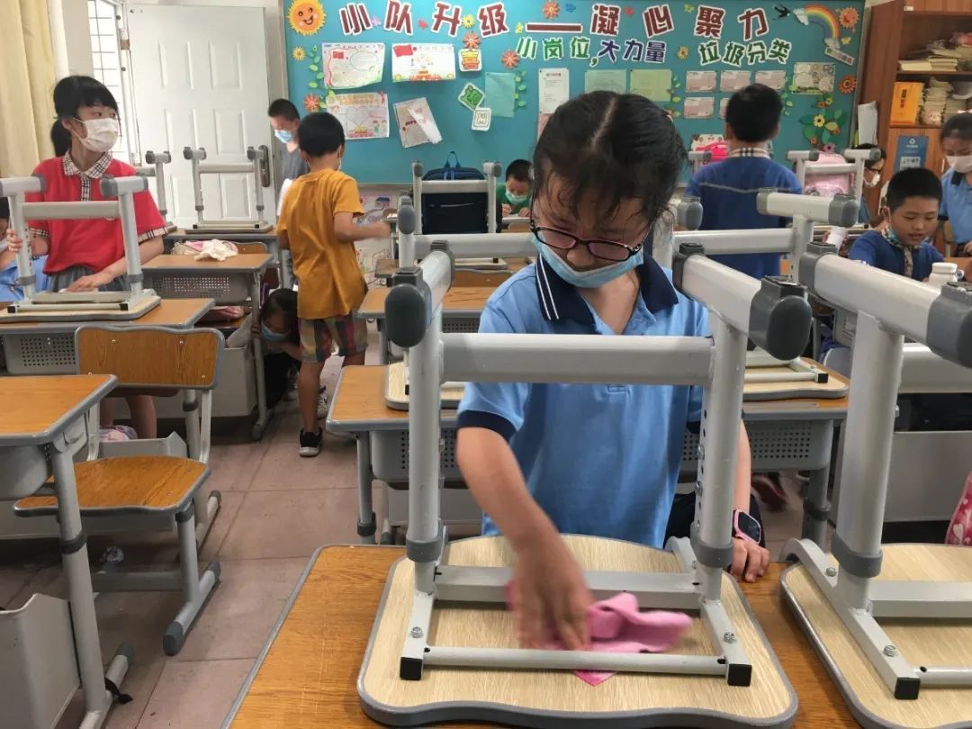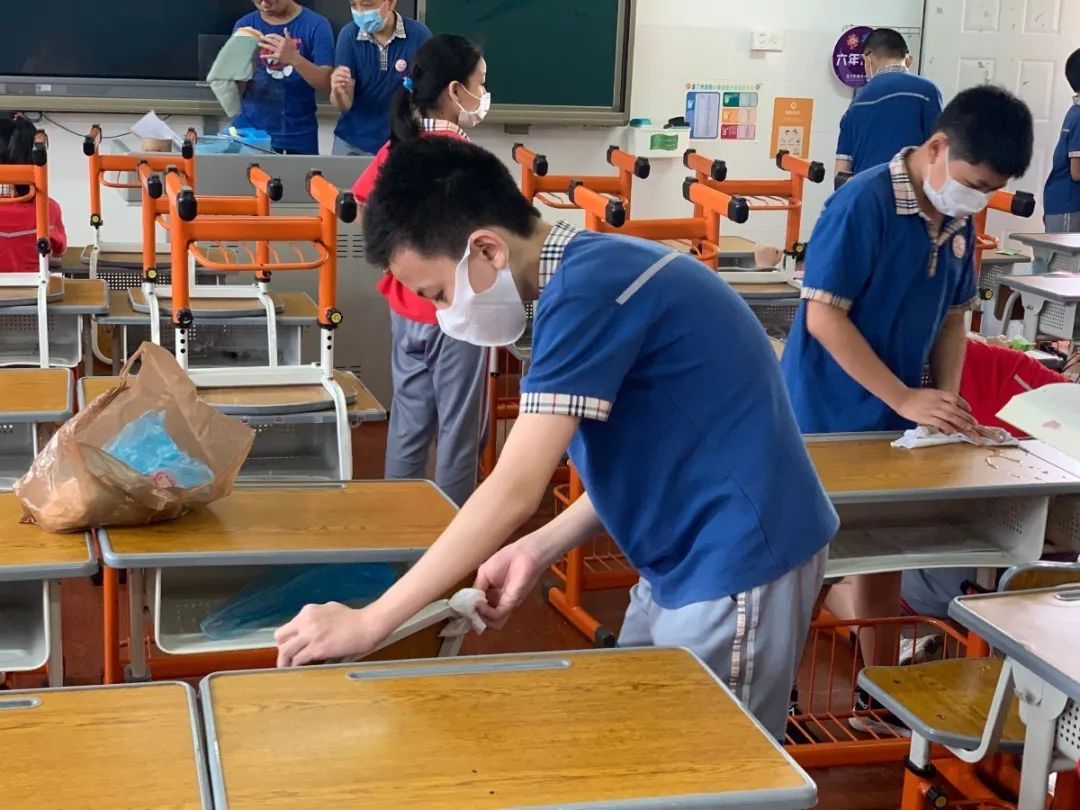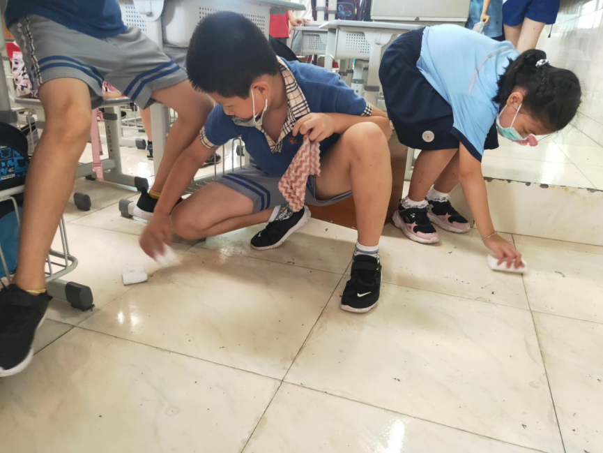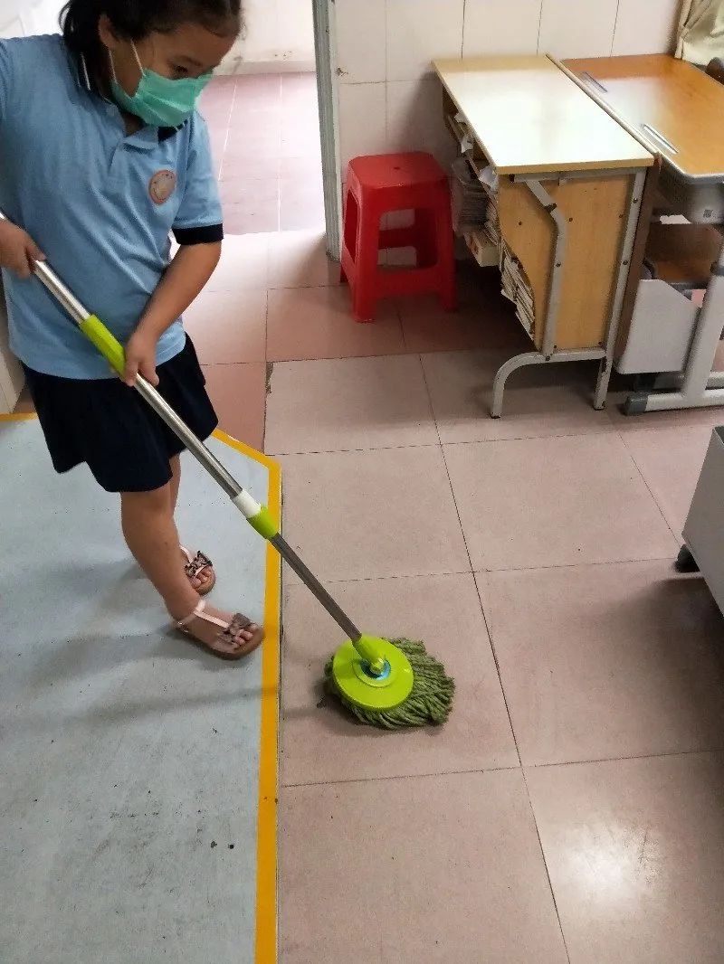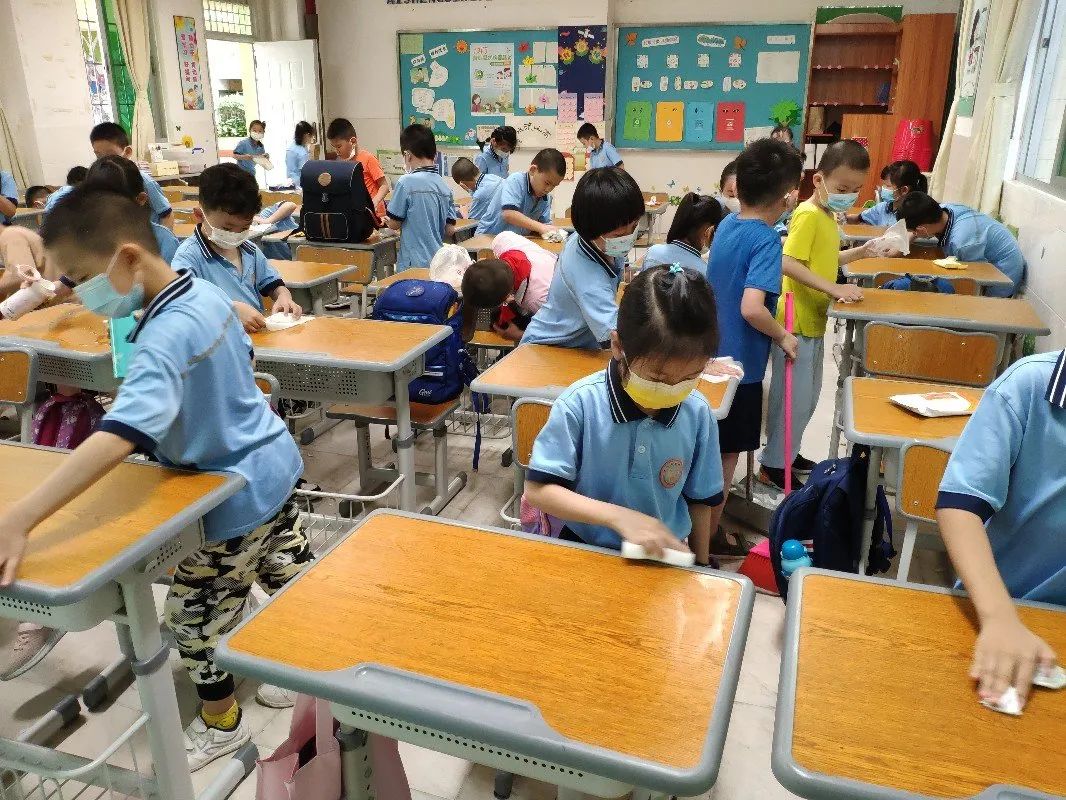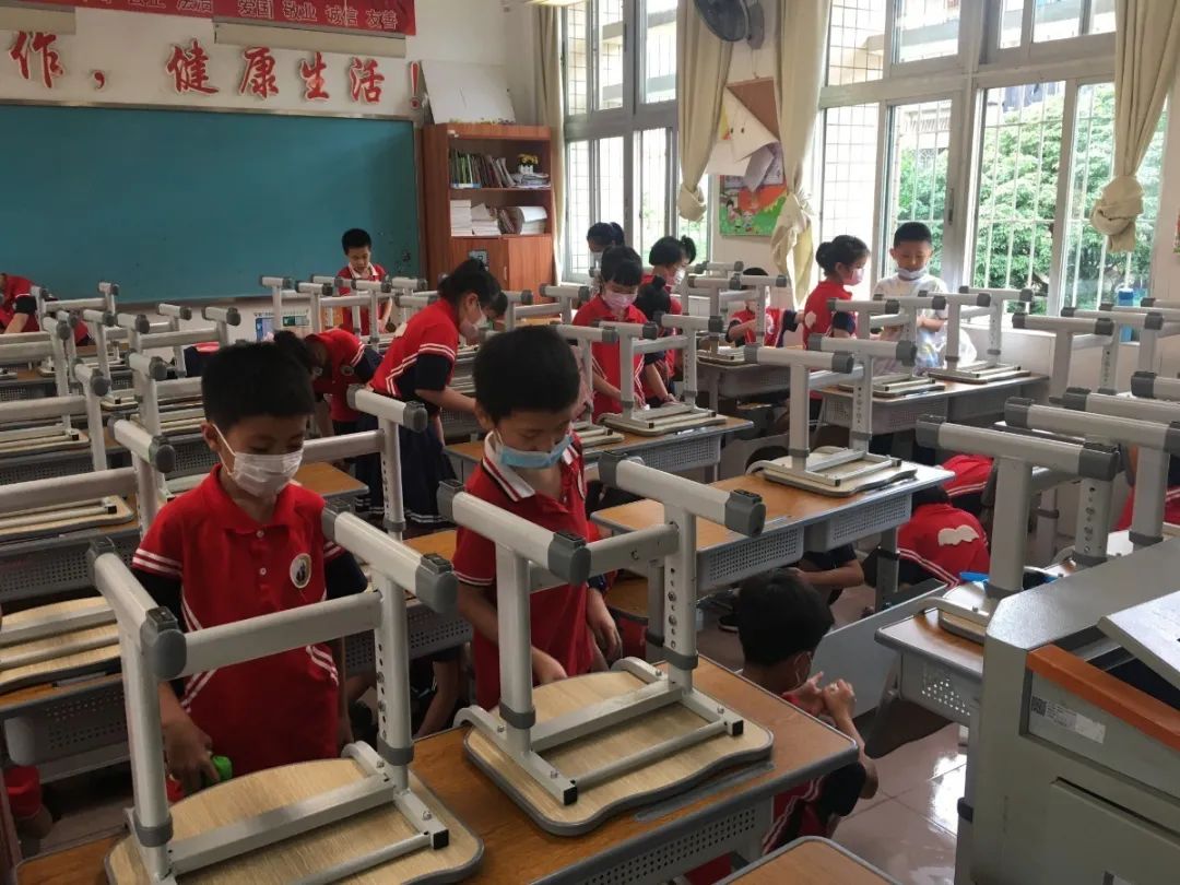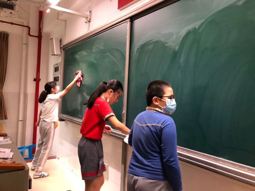 在班会课中各班学习的劳动技能,应当马上应用于实践——这不,下午第二节课起,全校组织了如火如荼的大扫除活动。