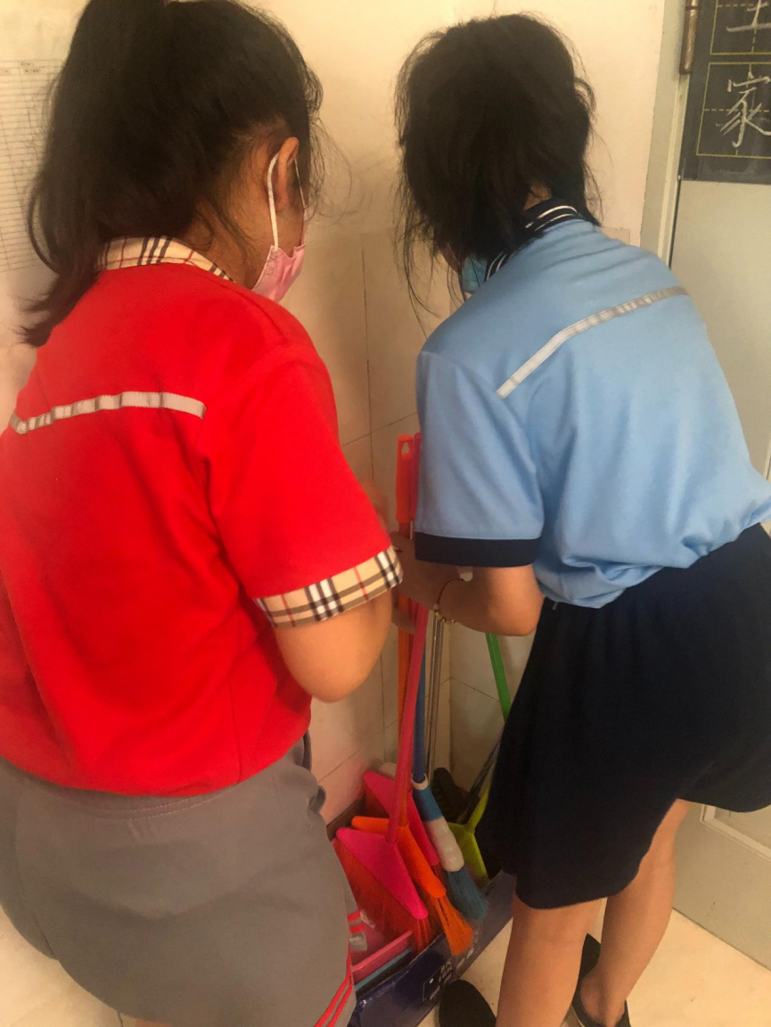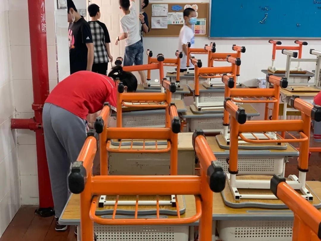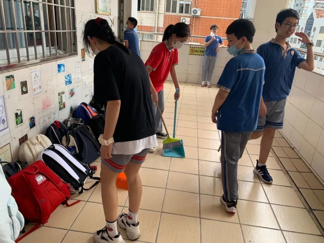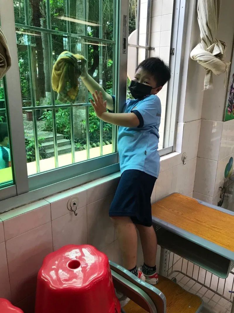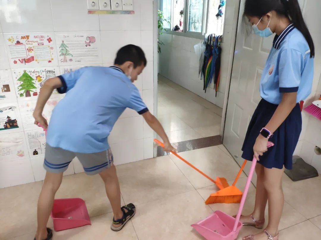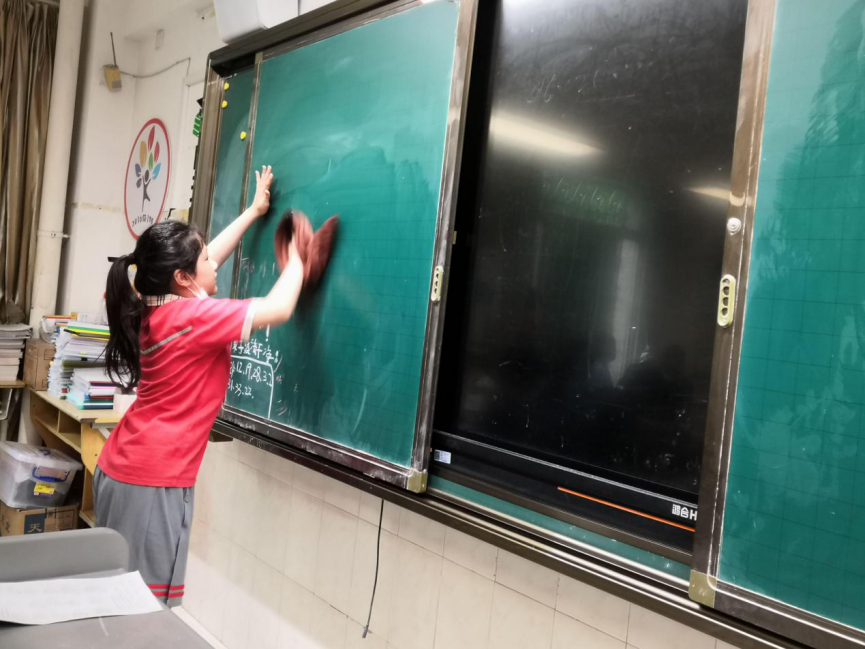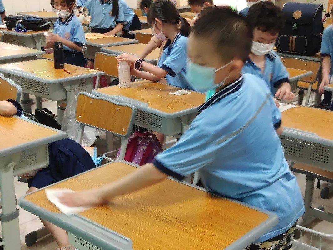 在班会课中各班学习的劳动技能,应当马上应用于实践——这不,下午第二节课起,全校组织了如火如荼的大扫除活动。