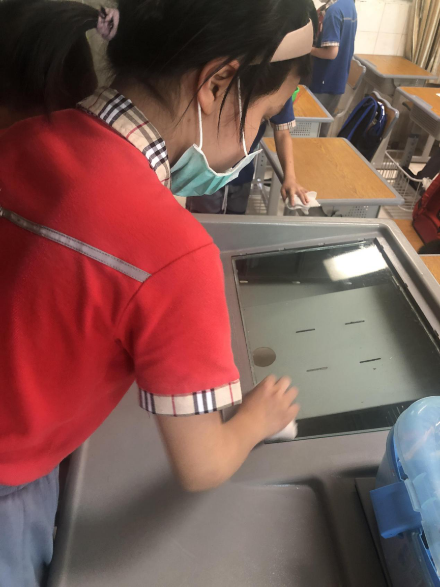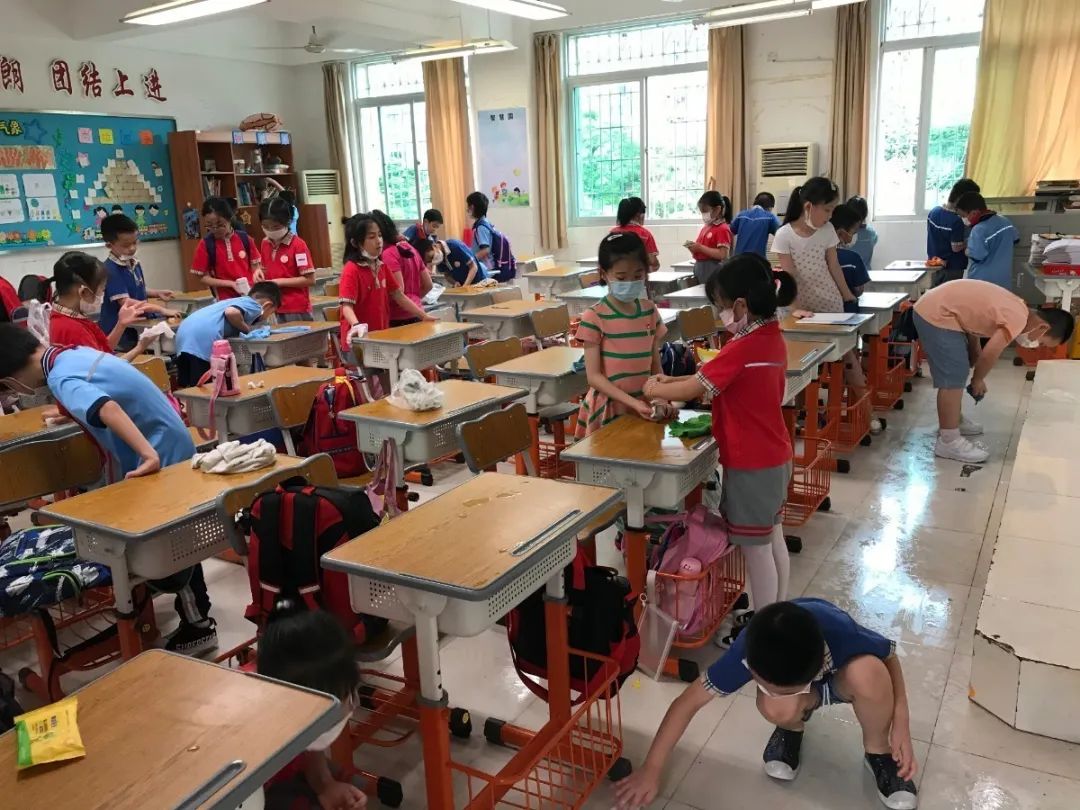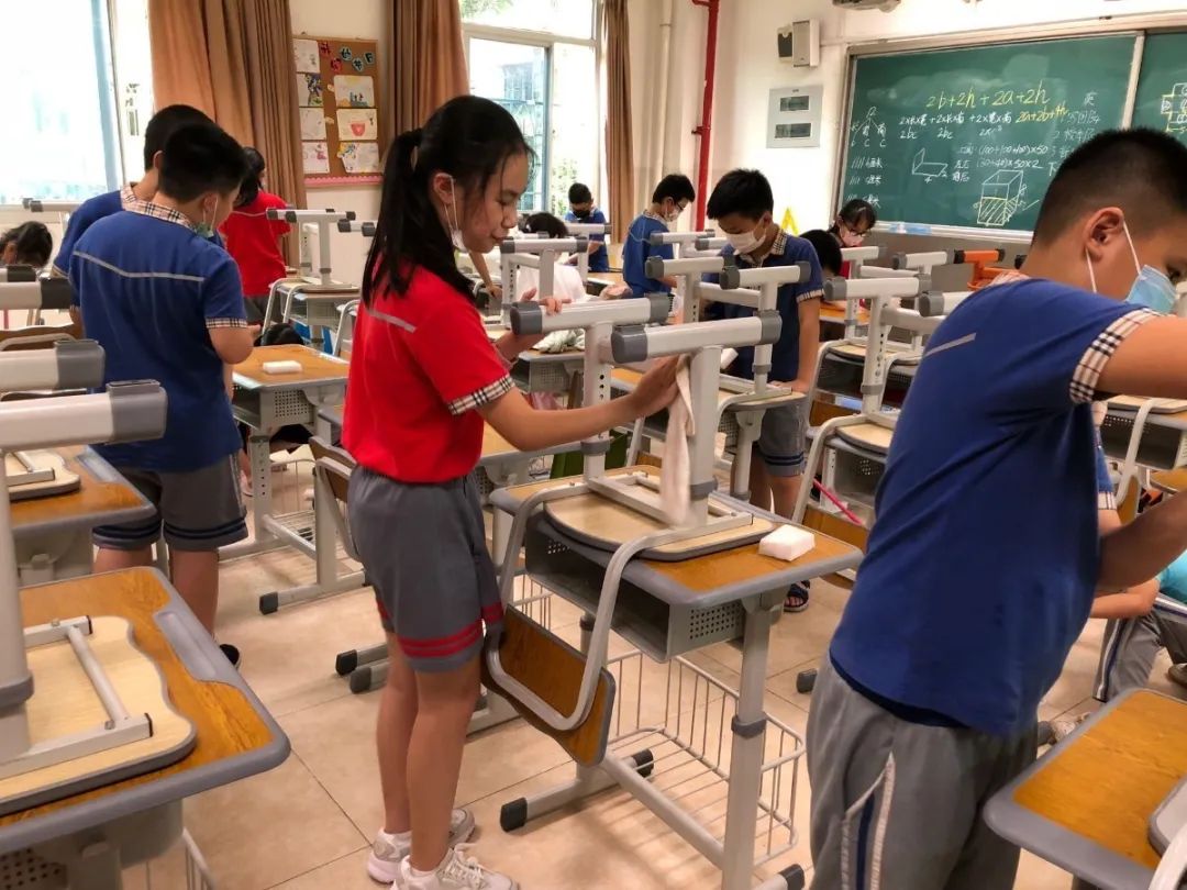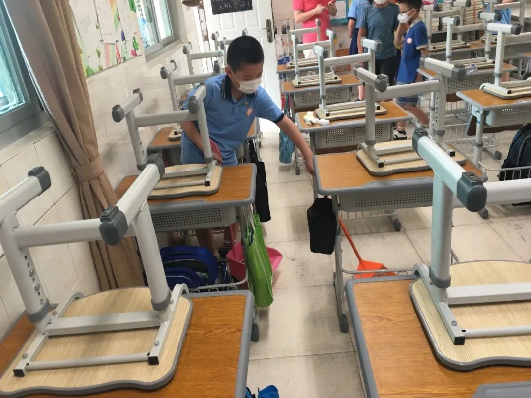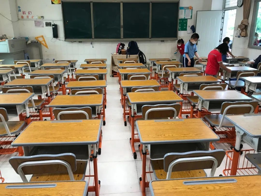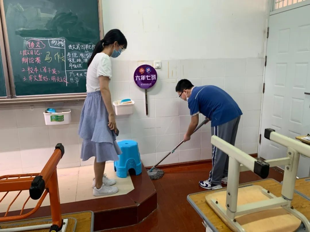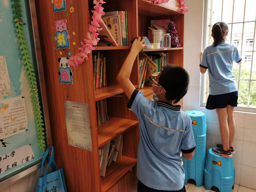 在班会课中各班学习的劳动技能,应当马上应用于实践——这不,下午第二节课起,全校组织了如火如荼的大扫除活动。