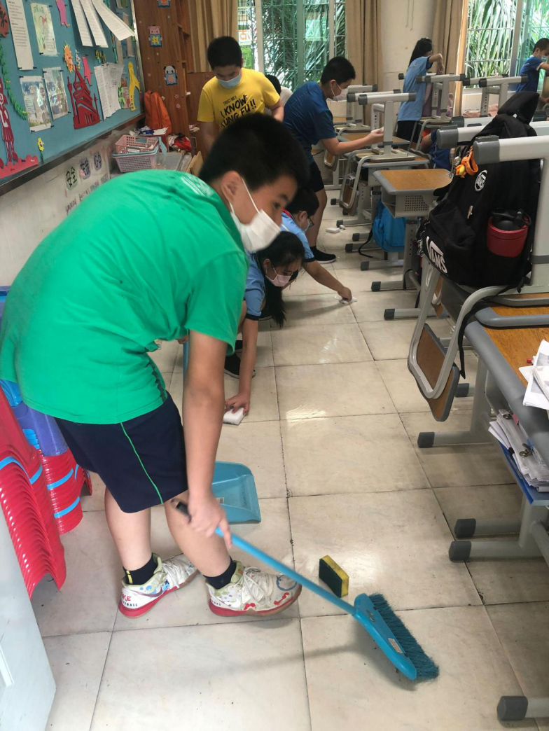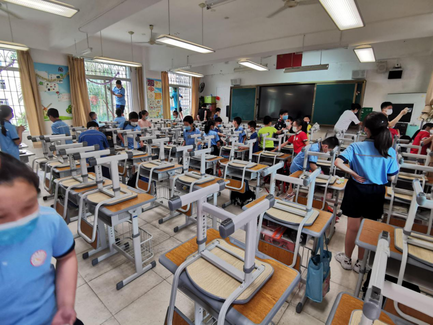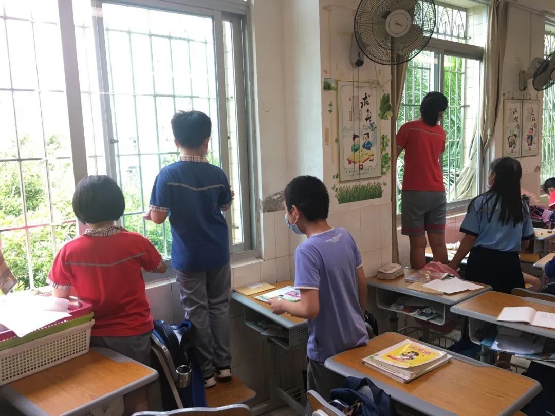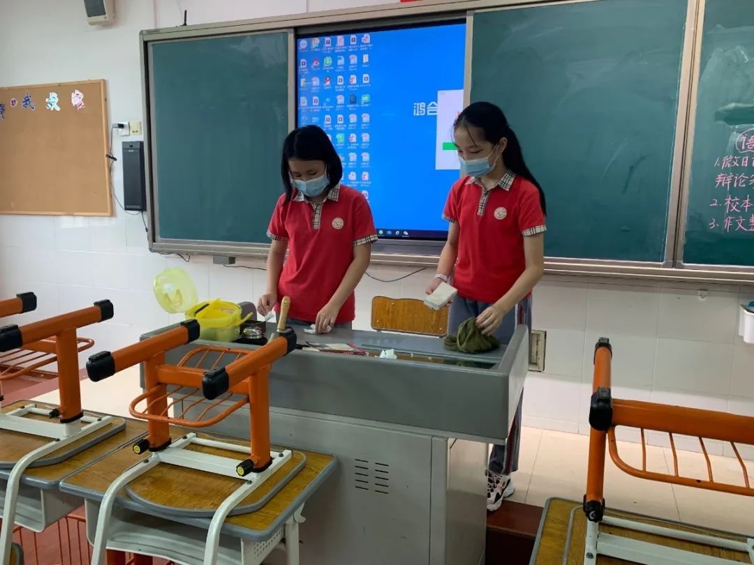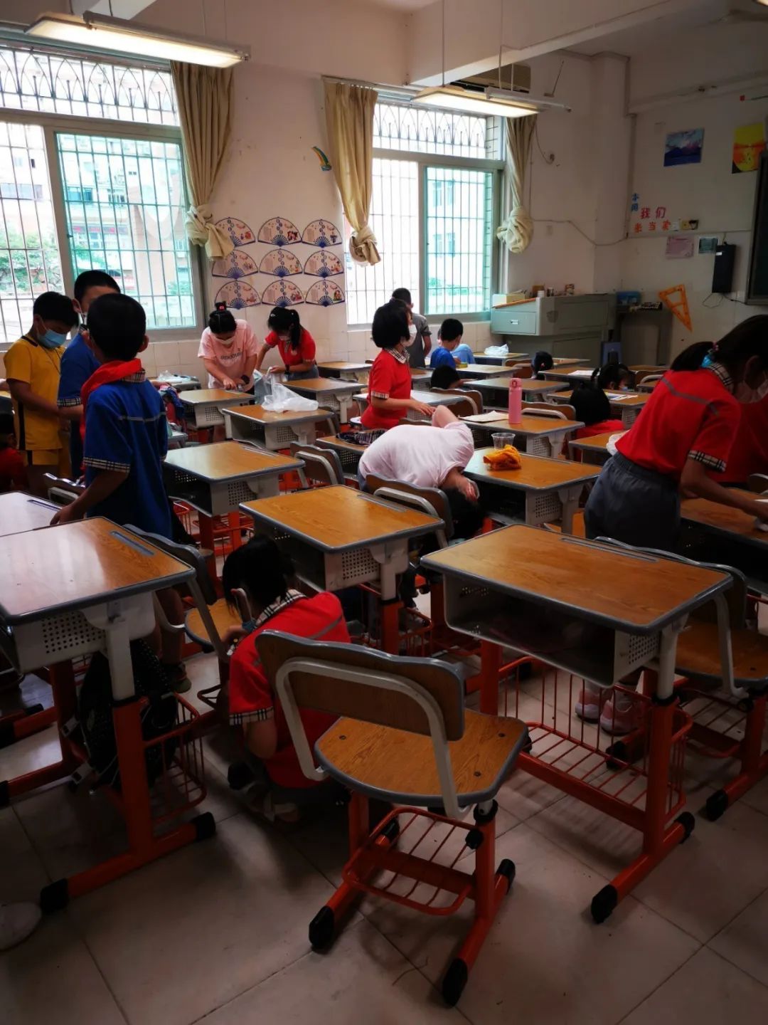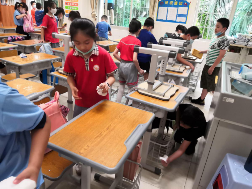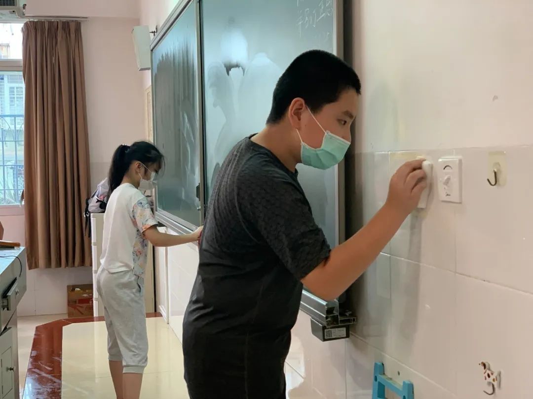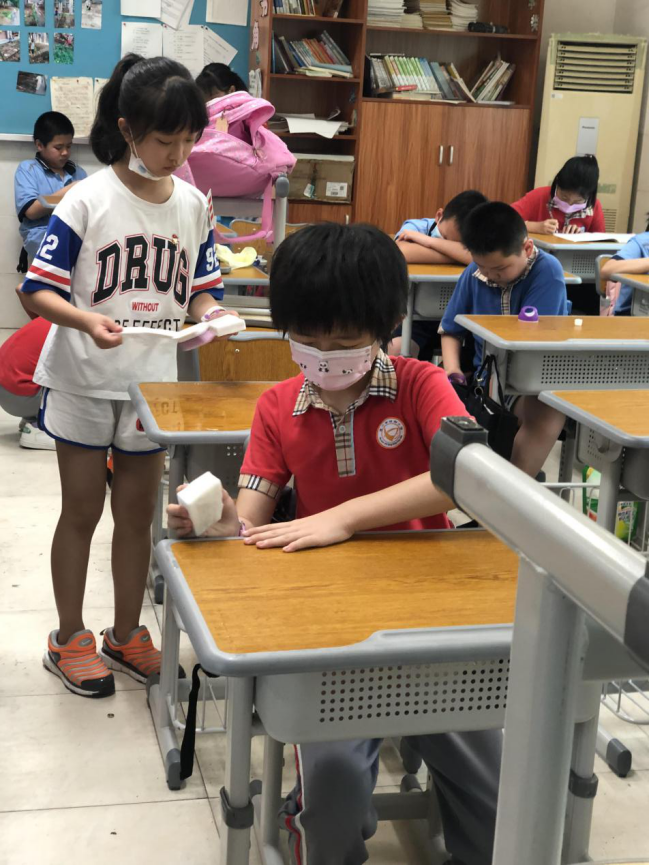 在班会课中各班学习的劳动技能,应当马上应用于实践——这不,下午第二节课起,全校组织了如火如荼的大扫除活动。