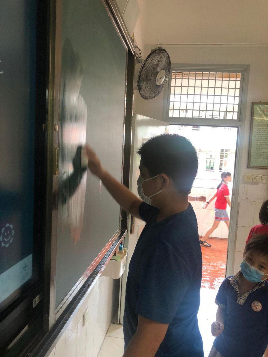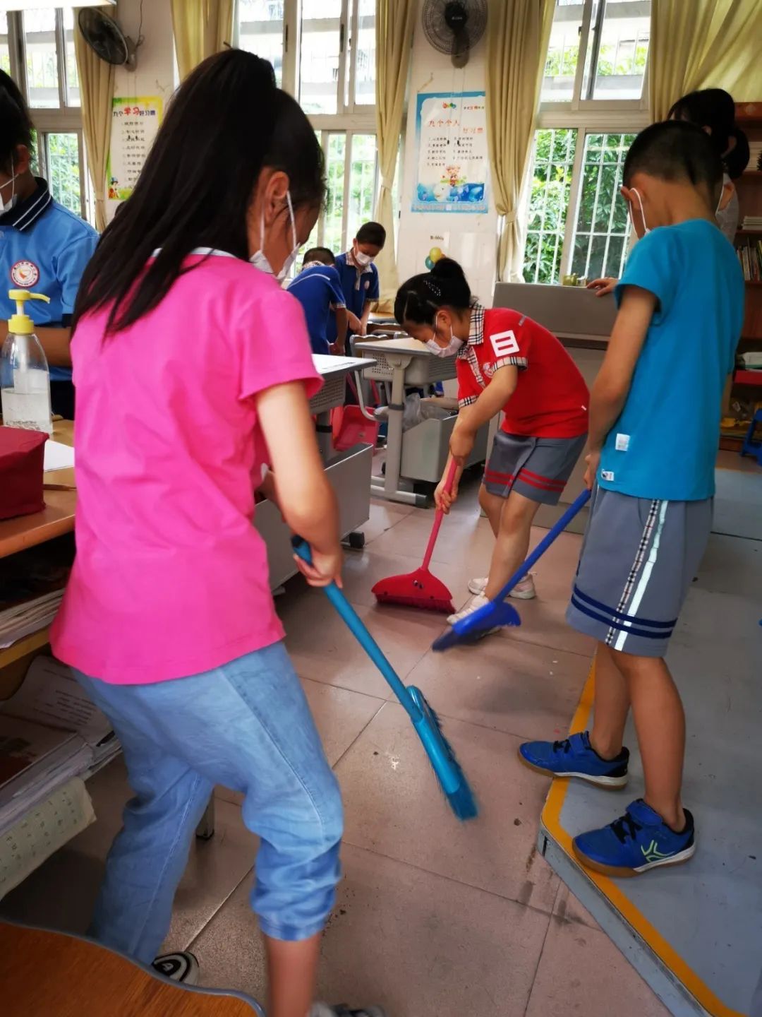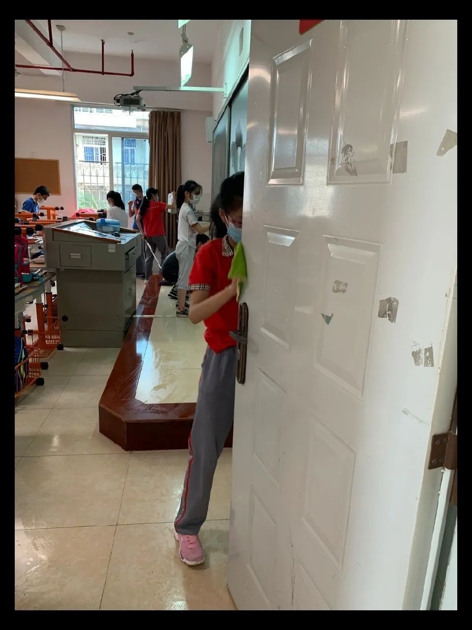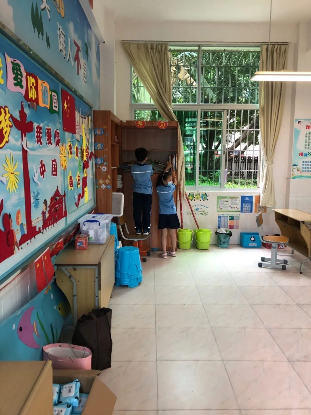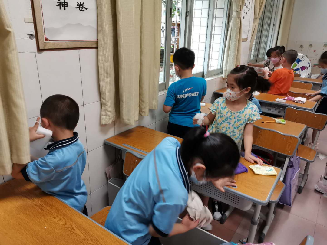 在班会课中各班学习的劳动技能,应当马上应用于实践——这不,下午第二节课起,全校组织了如火如荼的大扫除活动。