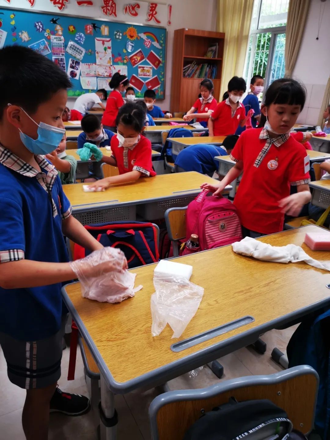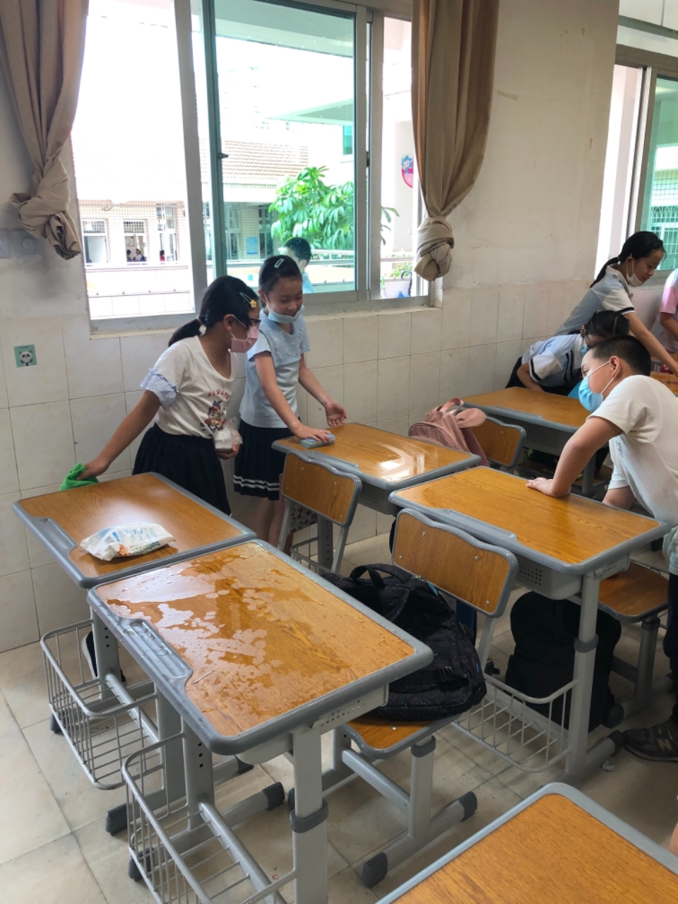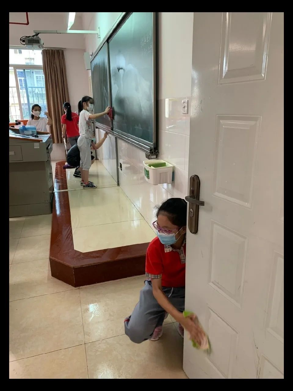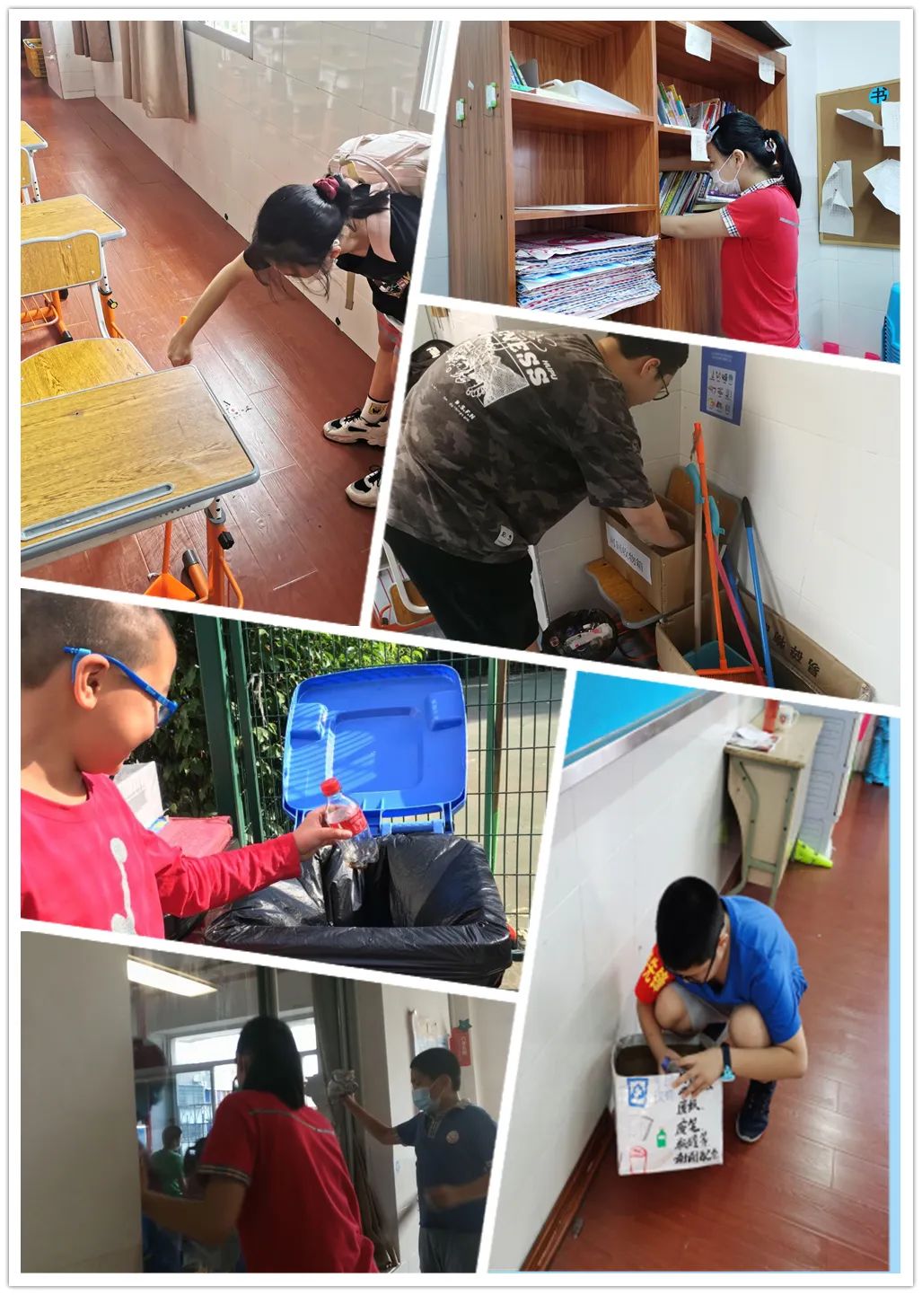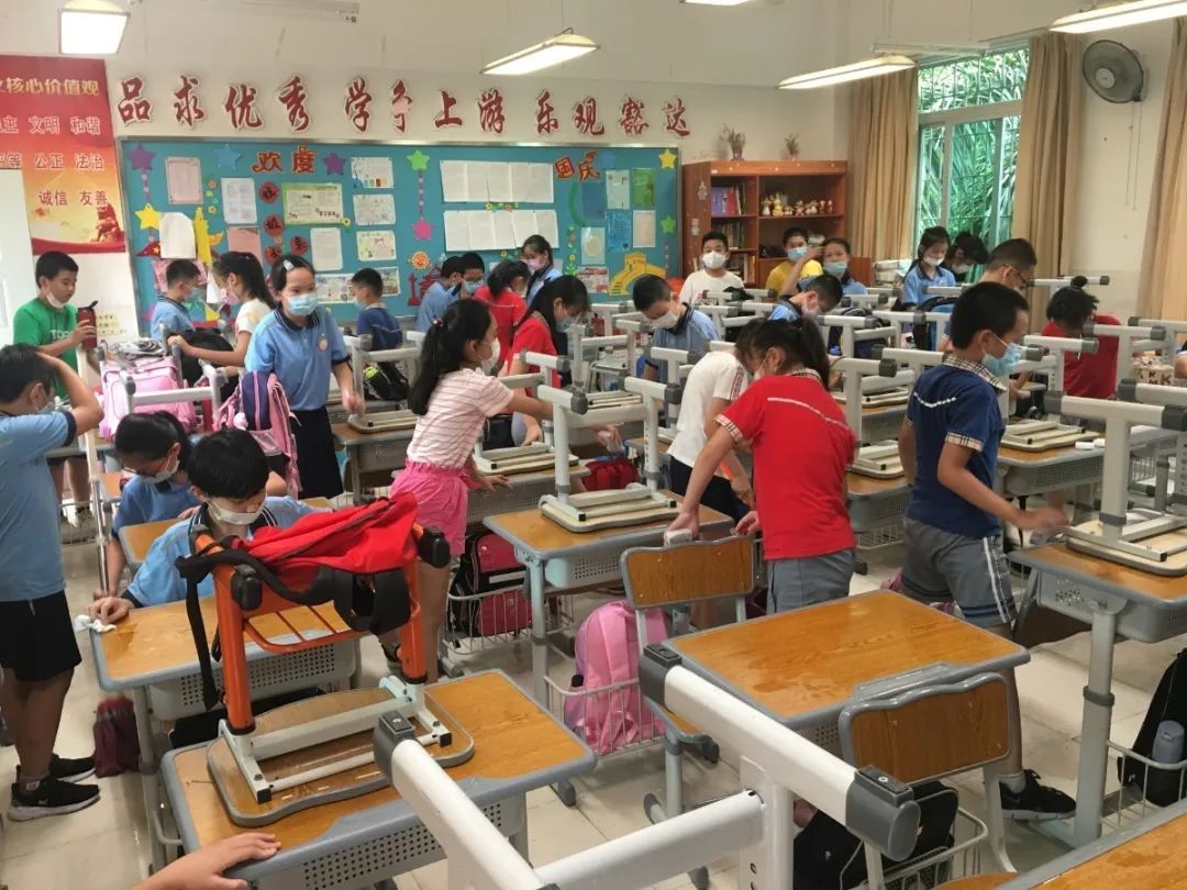 在班会课中各班学习的劳动技能,应当马上应用于实践——这不,下午第二节课起,全校组织了如火如荼的大扫除活动。
