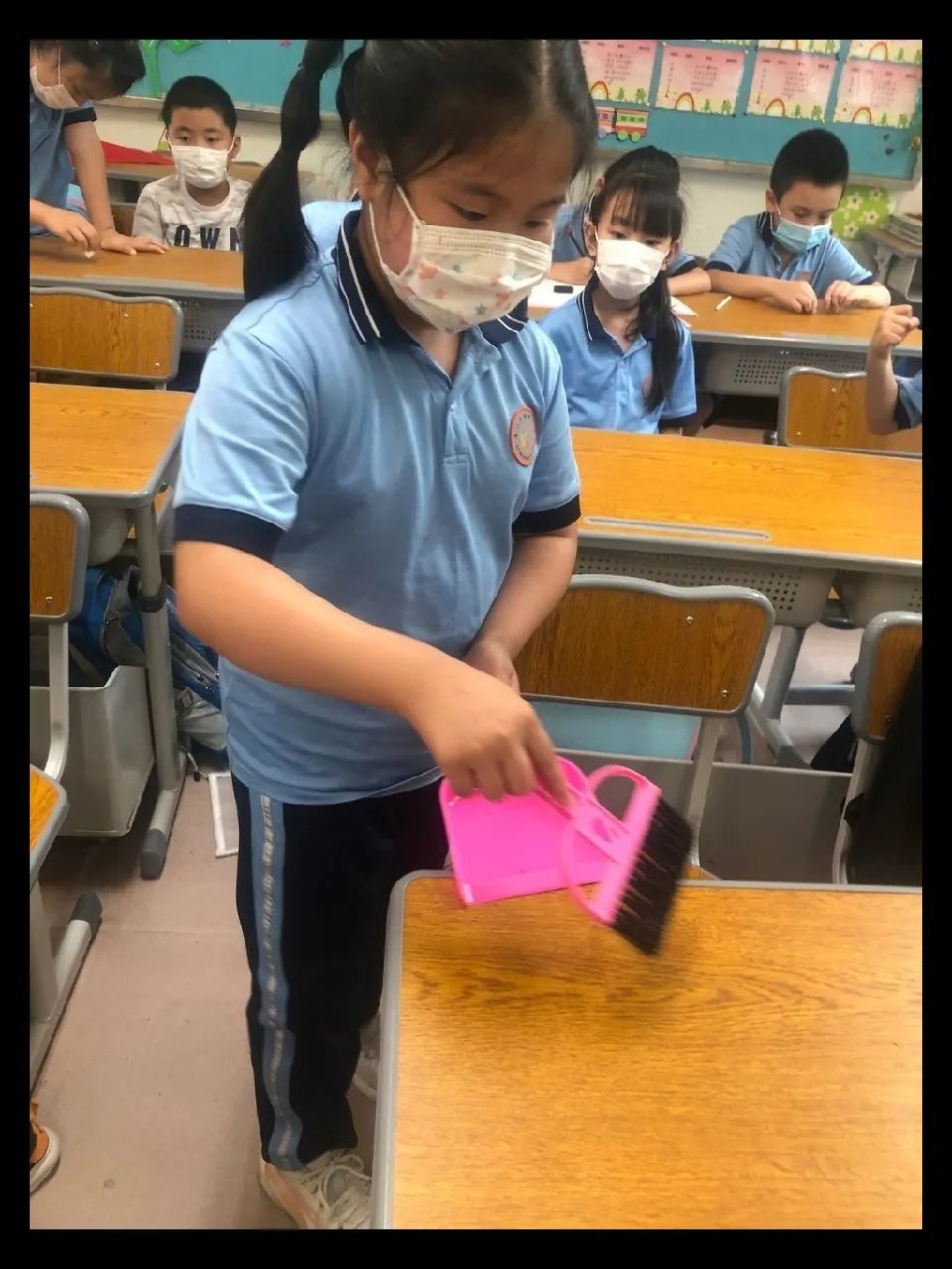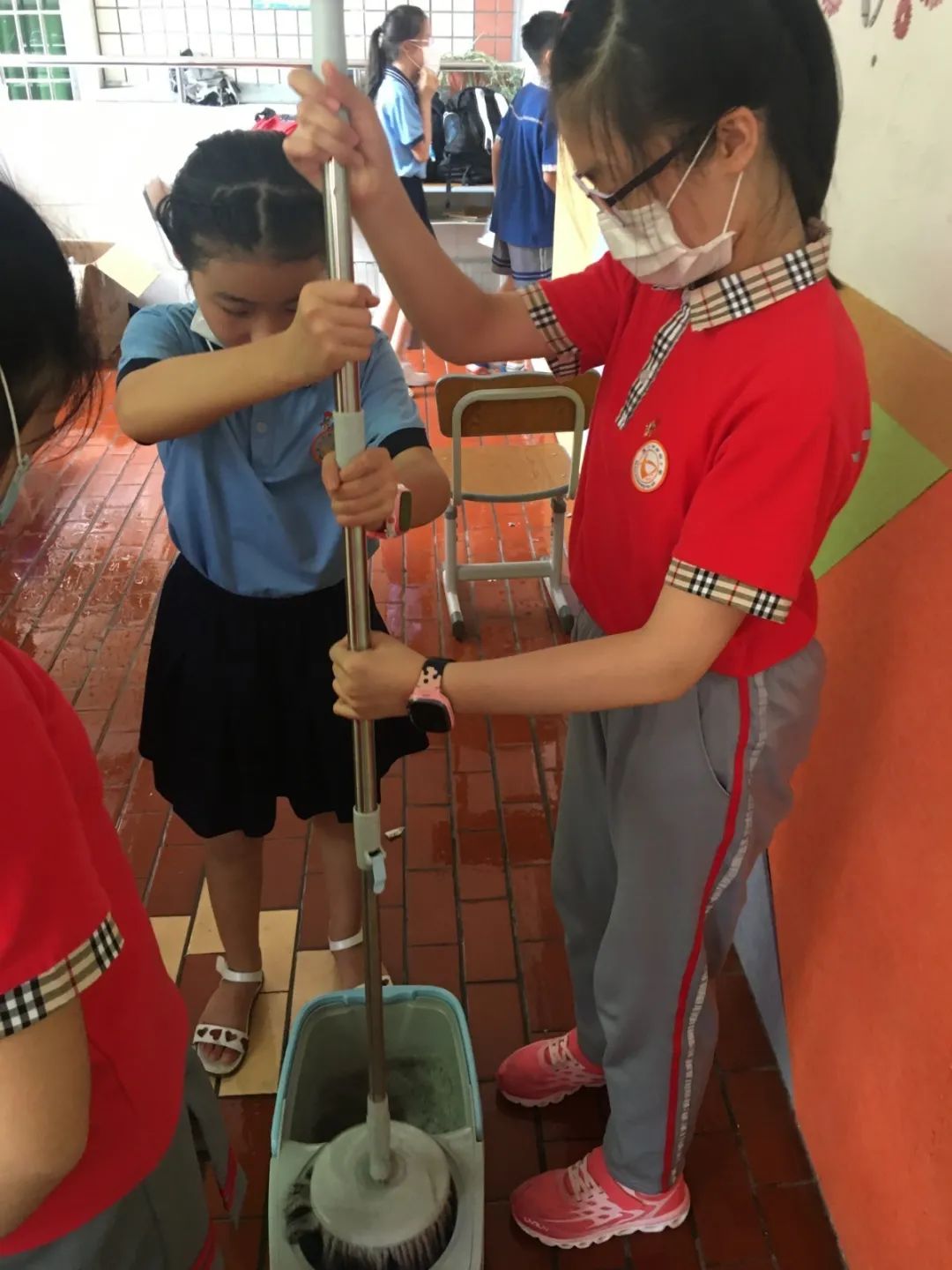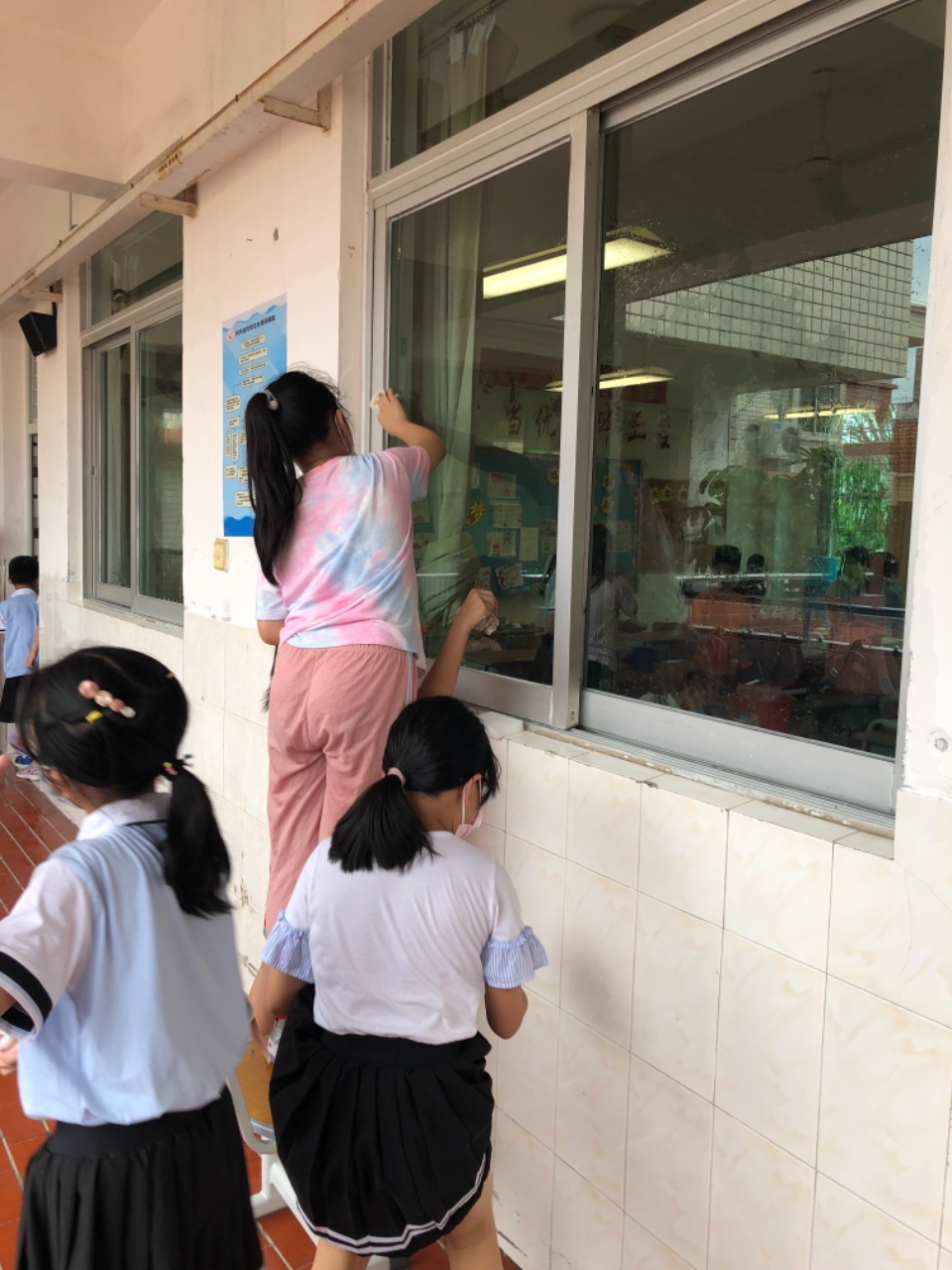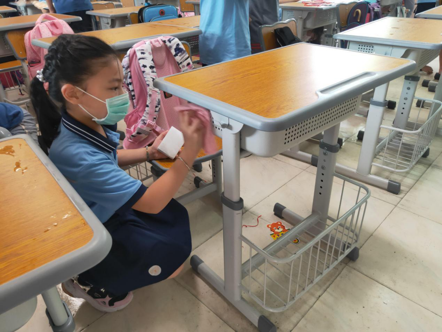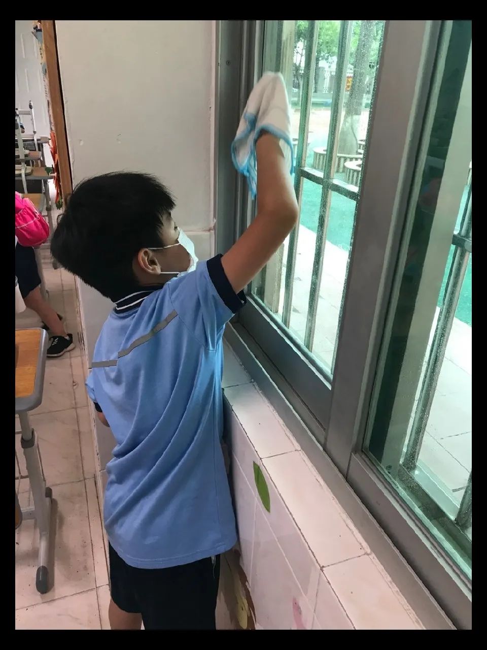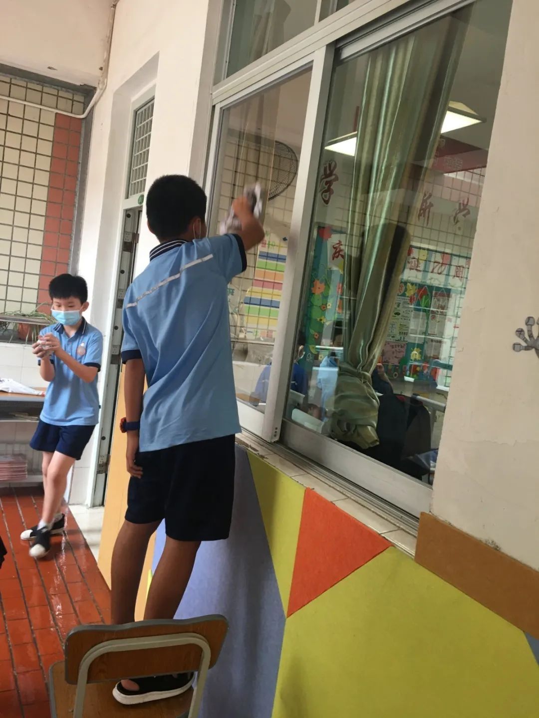 在班会课中各班学习的劳动技能,应当马上应用于实践——这不,下午第二节课起,全校组织了如火如荼的大扫除活动。