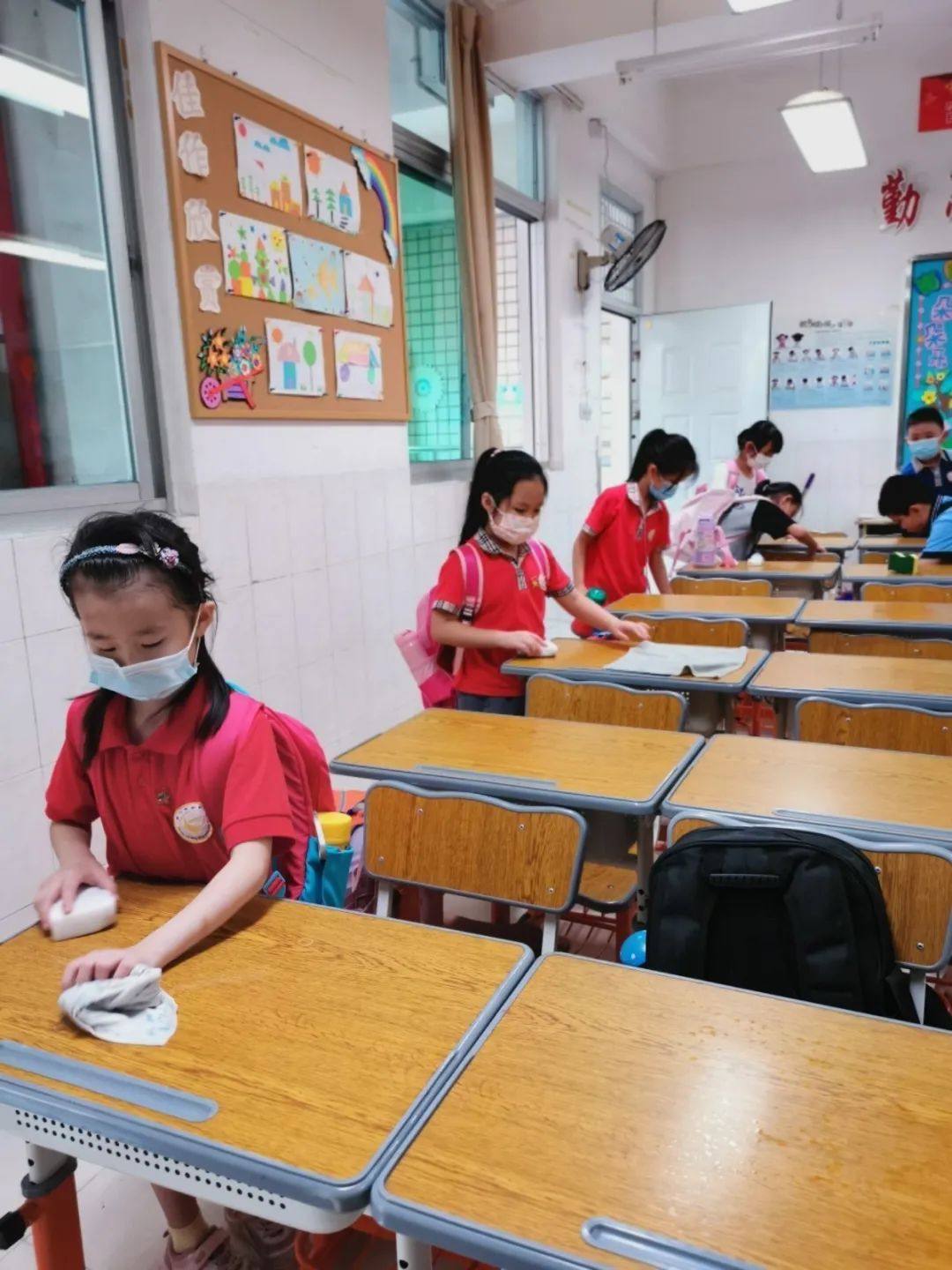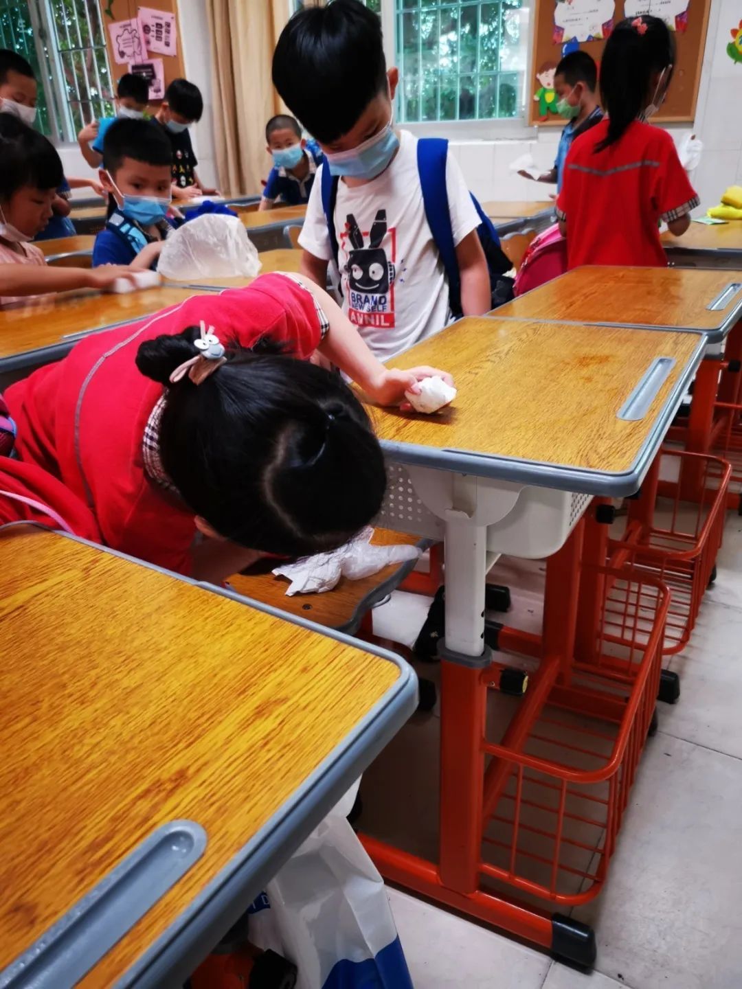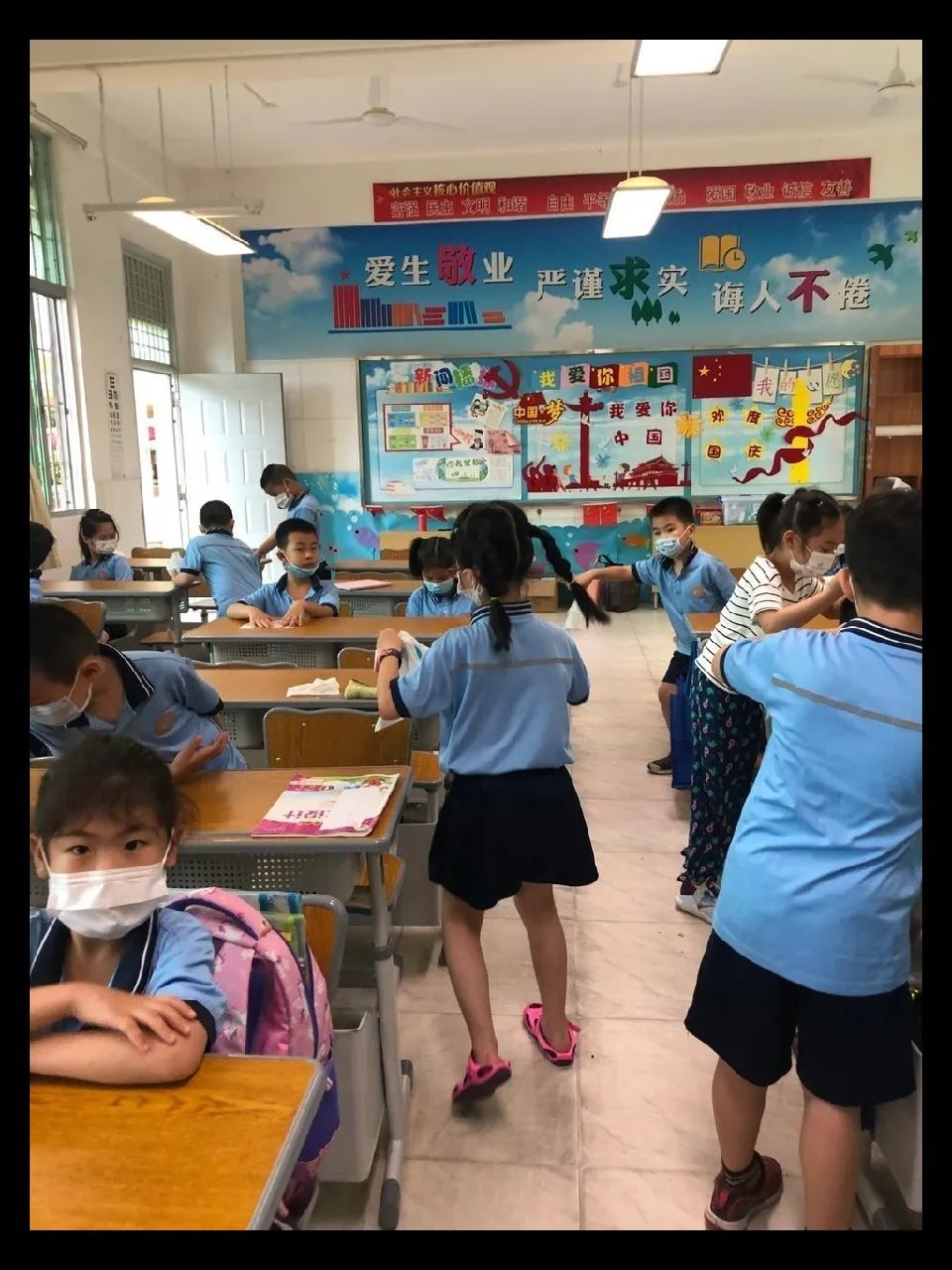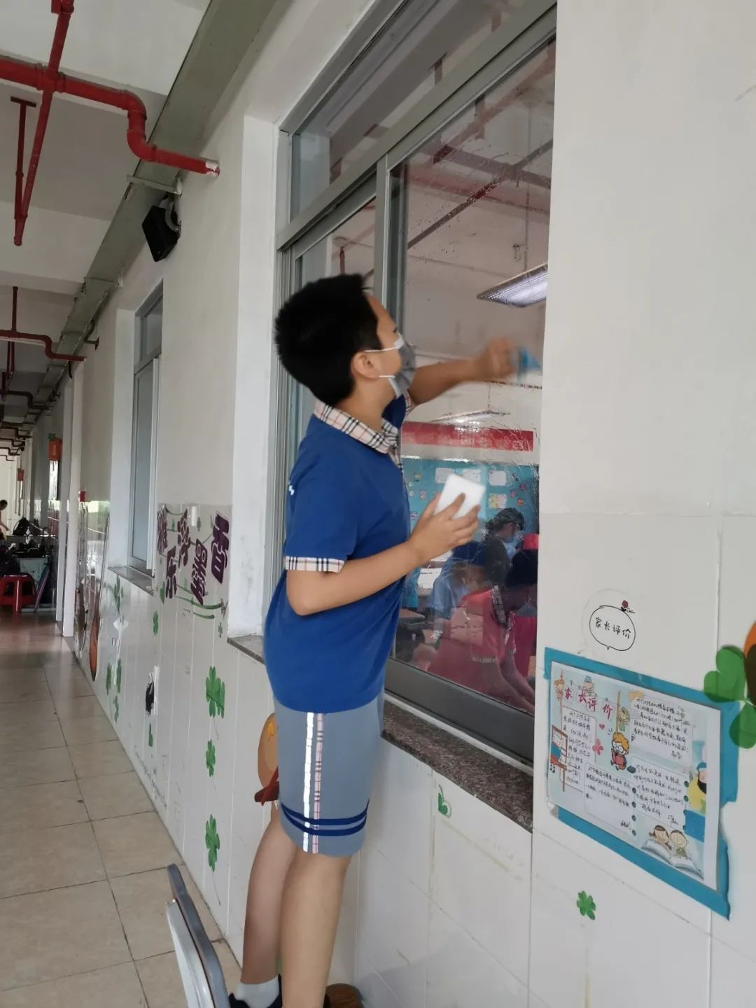 在班会课中各班学习的劳动技能,应当马上应用于实践——这不,下午第二节课起,全校组织了如火如荼的大扫除活动。