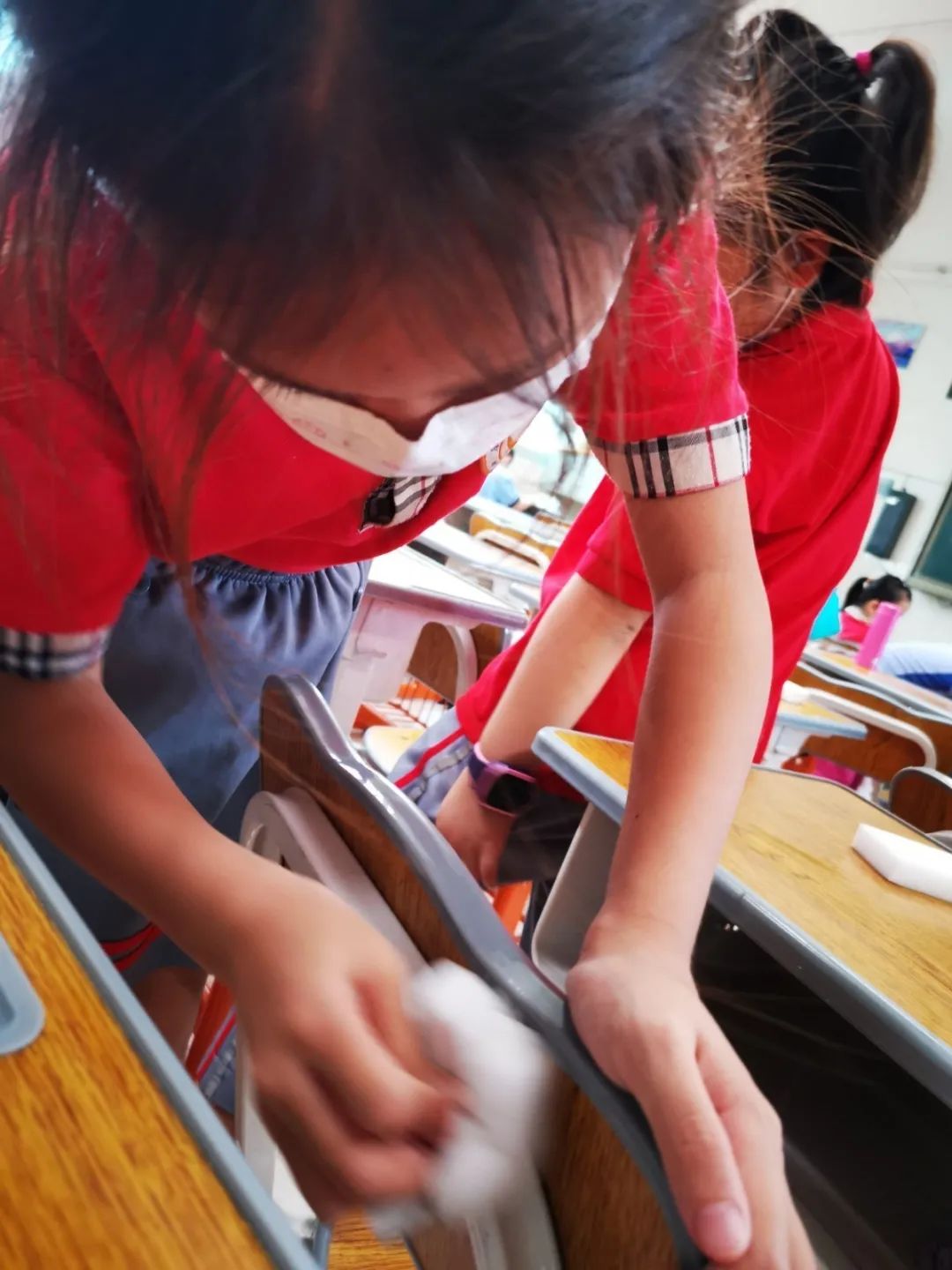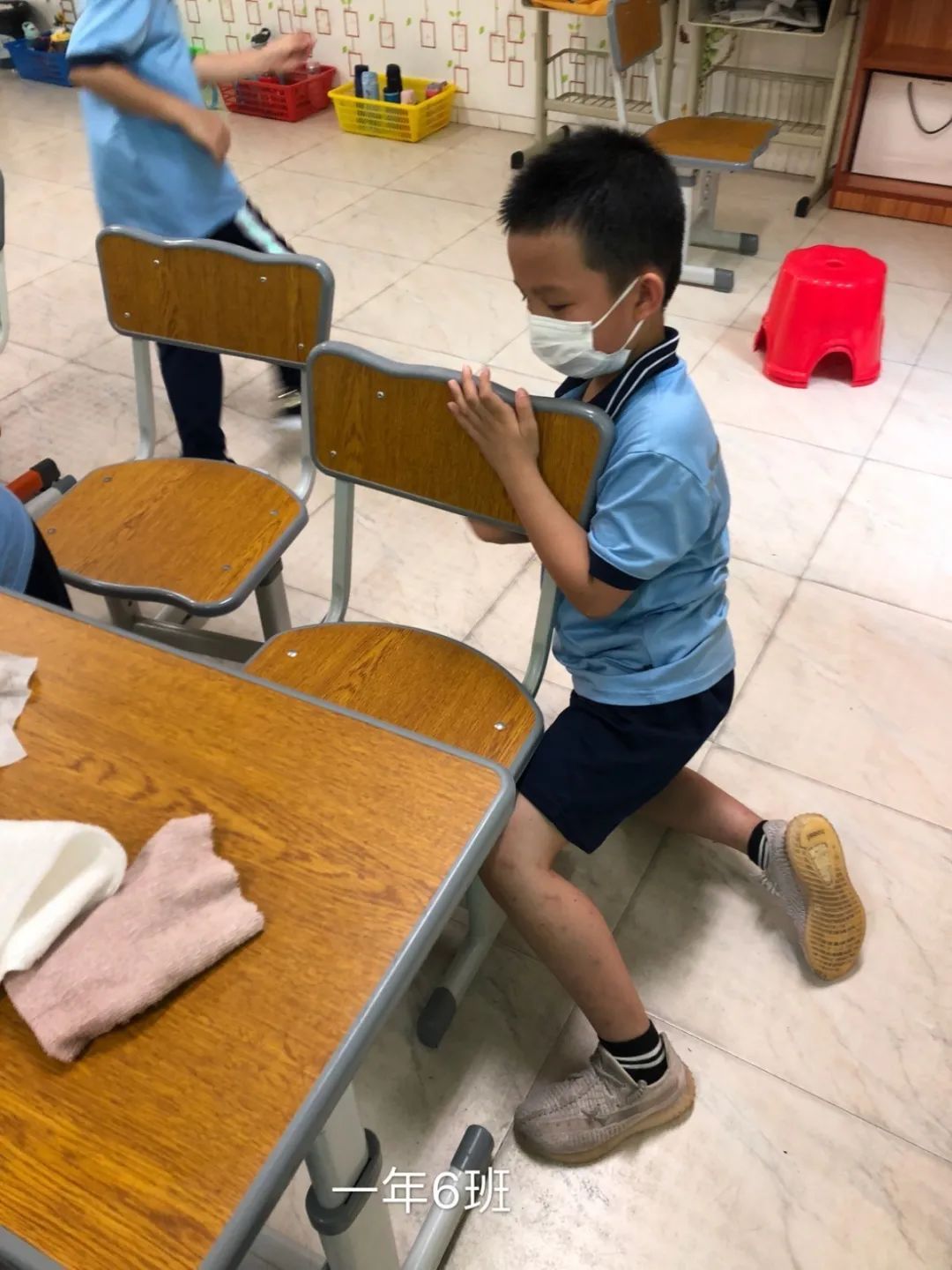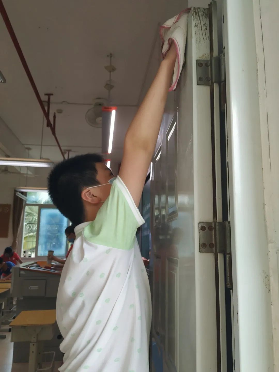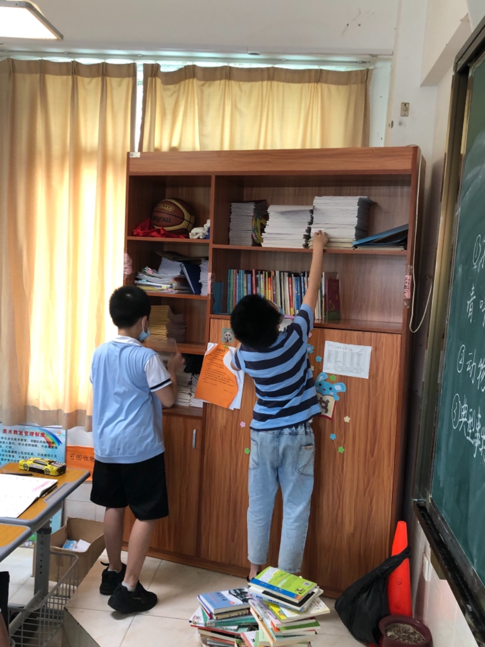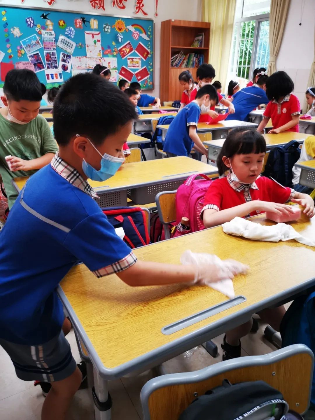 在班会课中各班学习的劳动技能,应当马上应用于实践——这不,下午第二节课起,全校组织了如火如荼的大扫除活动。