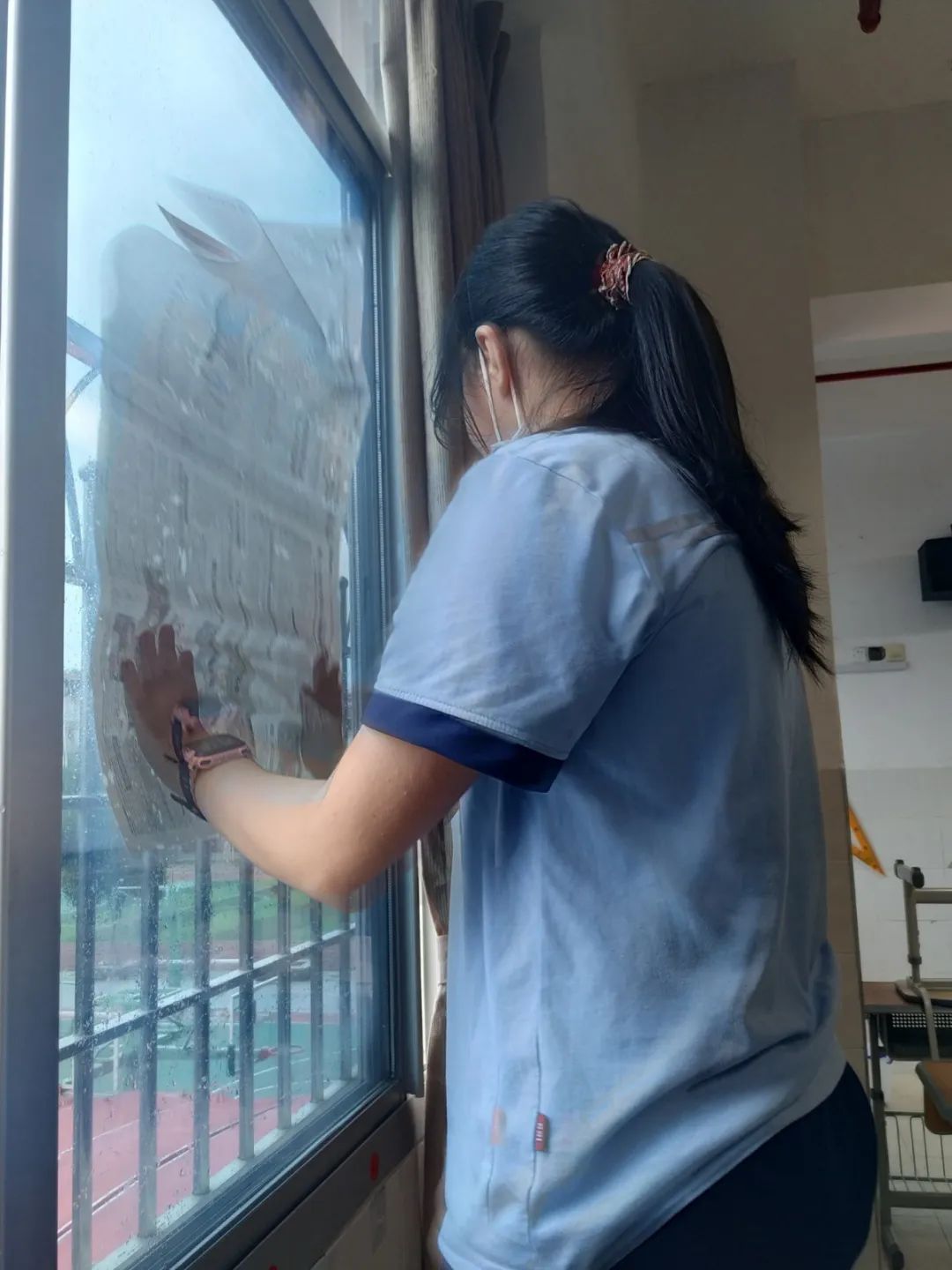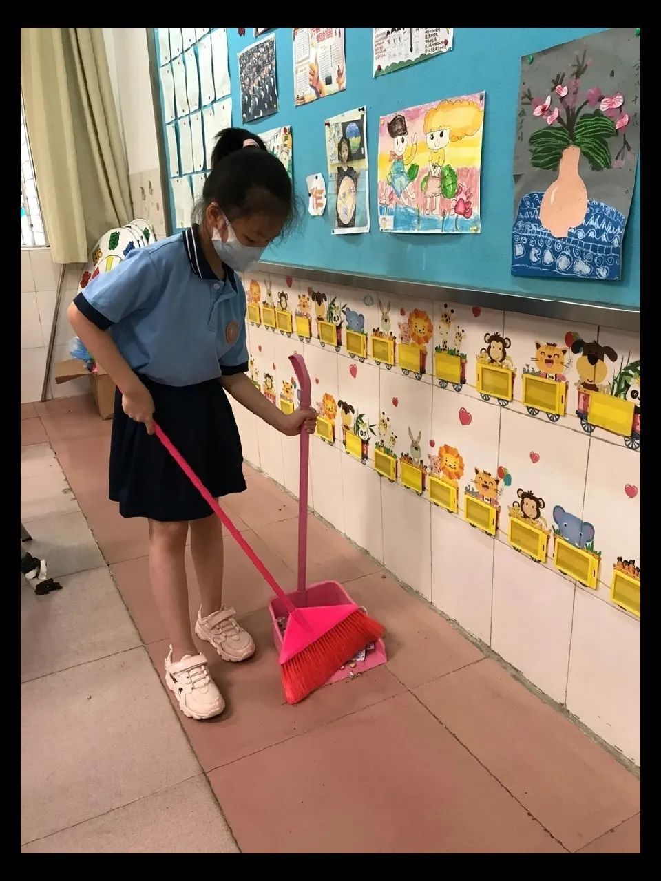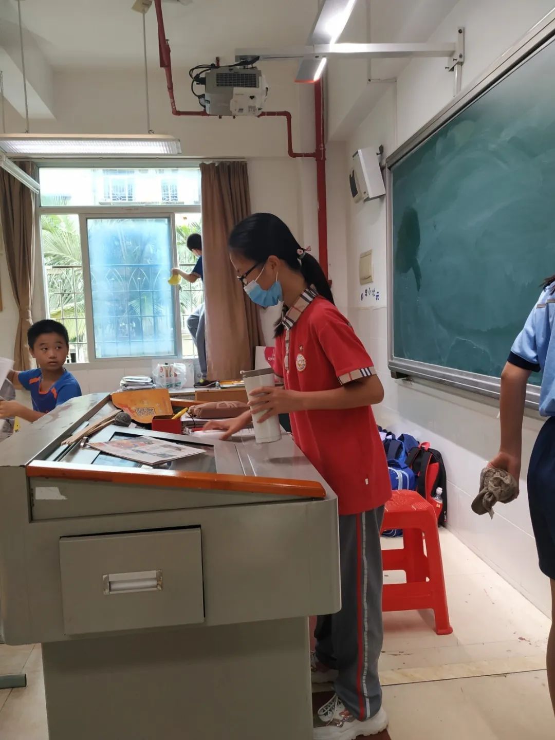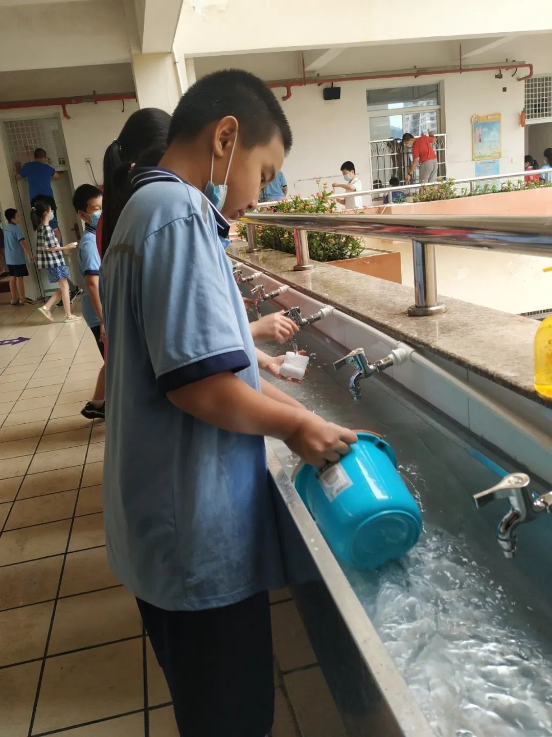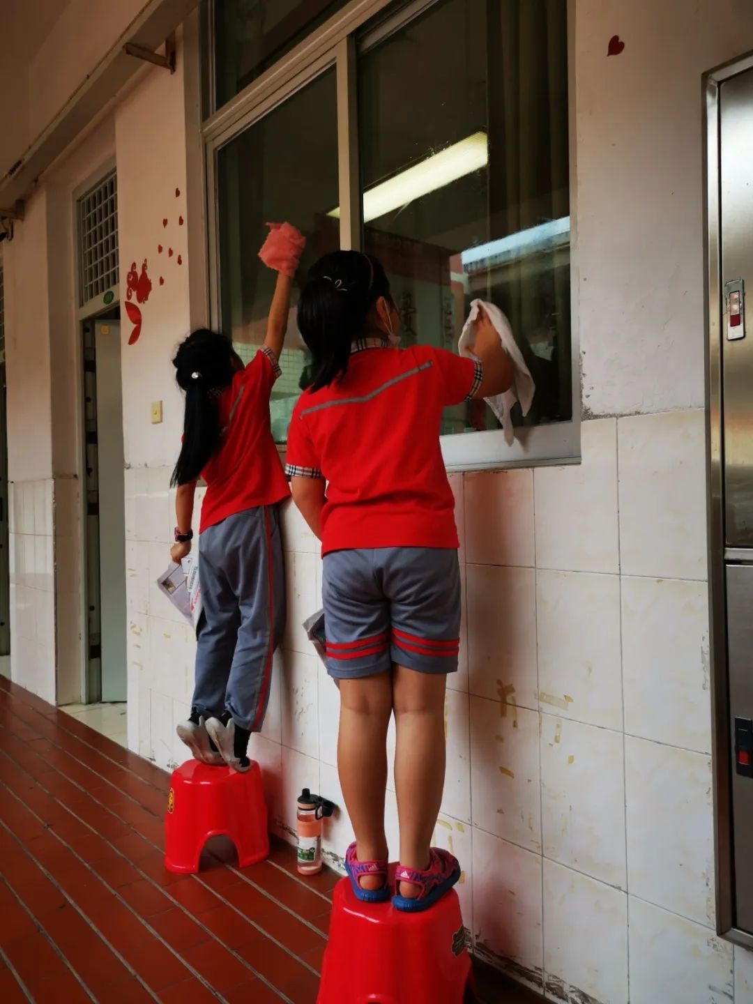 在班会课中各班学习的劳动技能,应当马上应用于实践——这不,下午第二节课起,全校组织了如火如荼的大扫除活动。