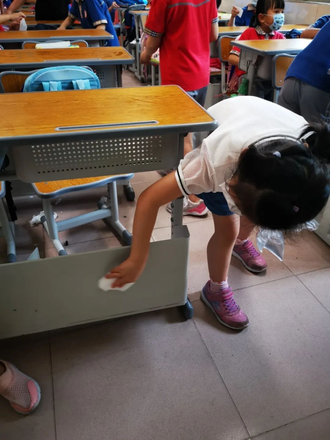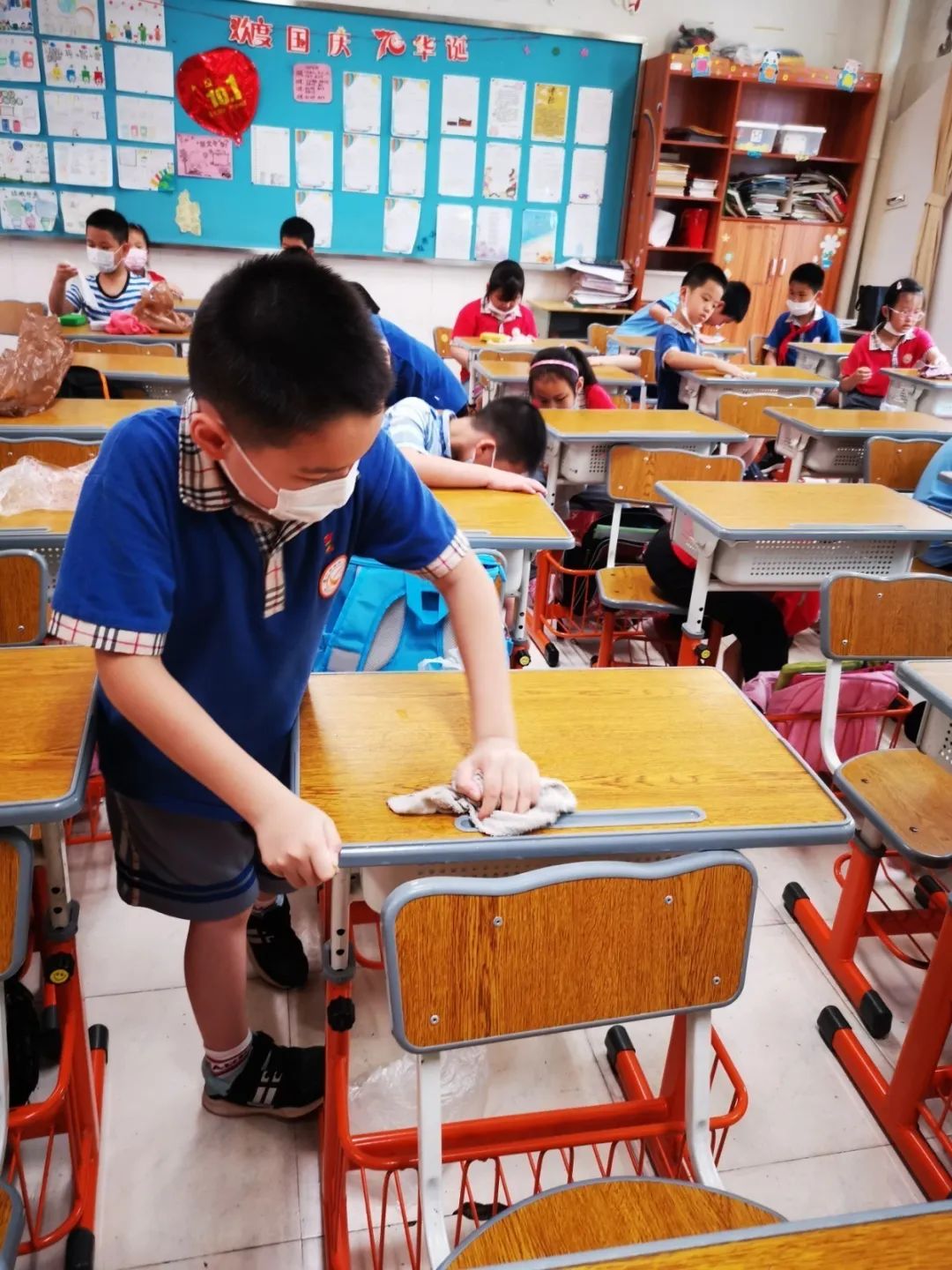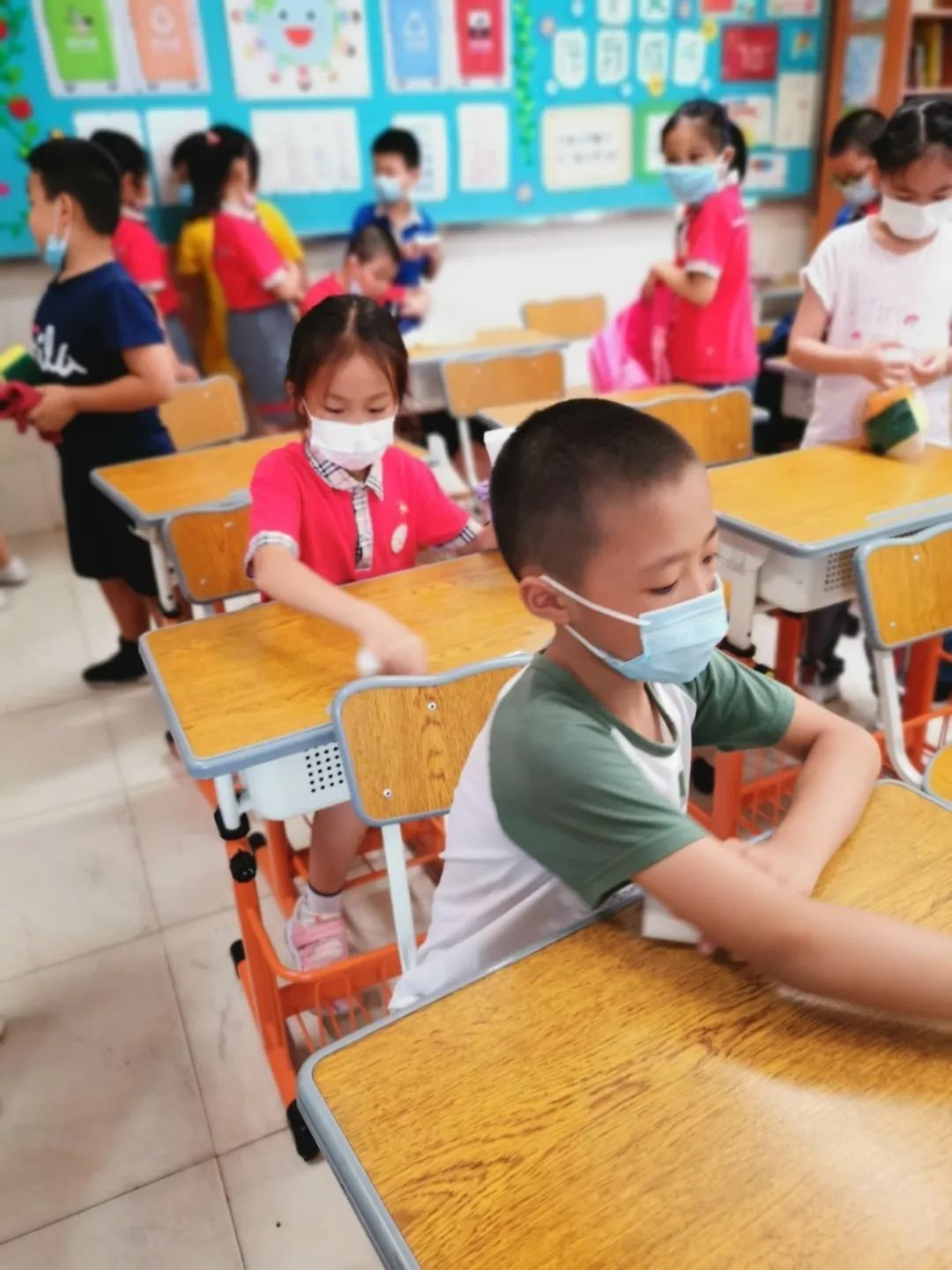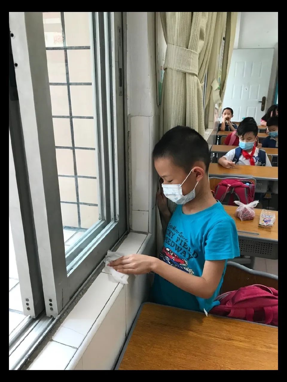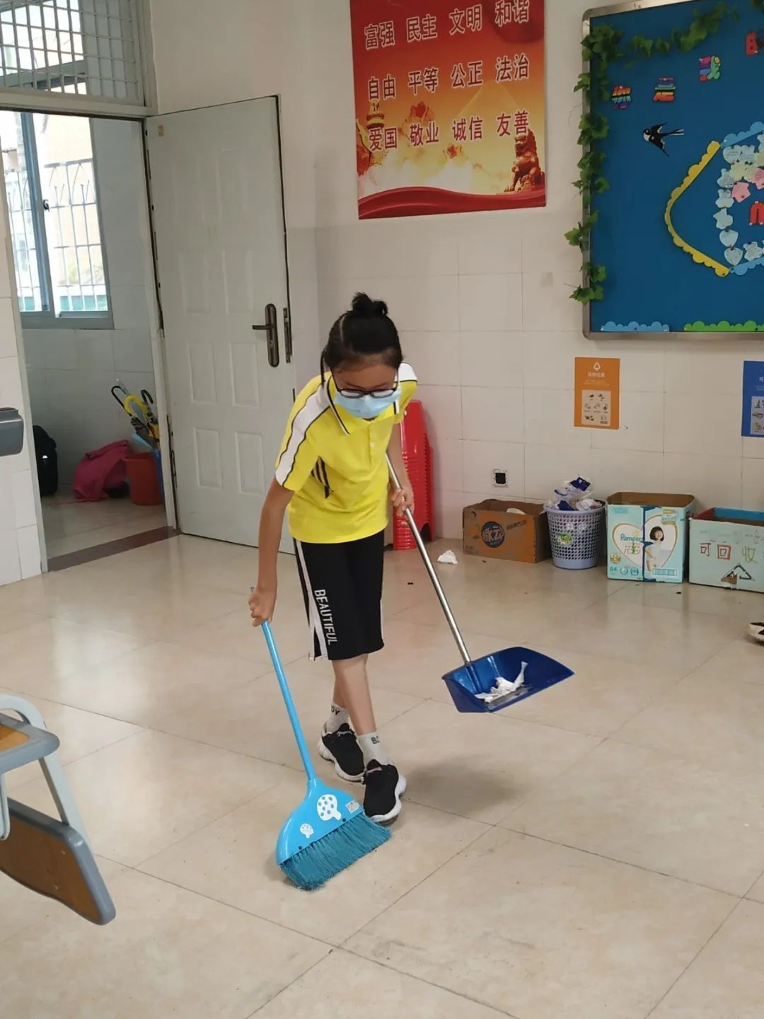 在班会课中各班学习的劳动技能,应当马上应用于实践——这不,下午第二节课起,全校组织了如火如荼的大扫除活动。