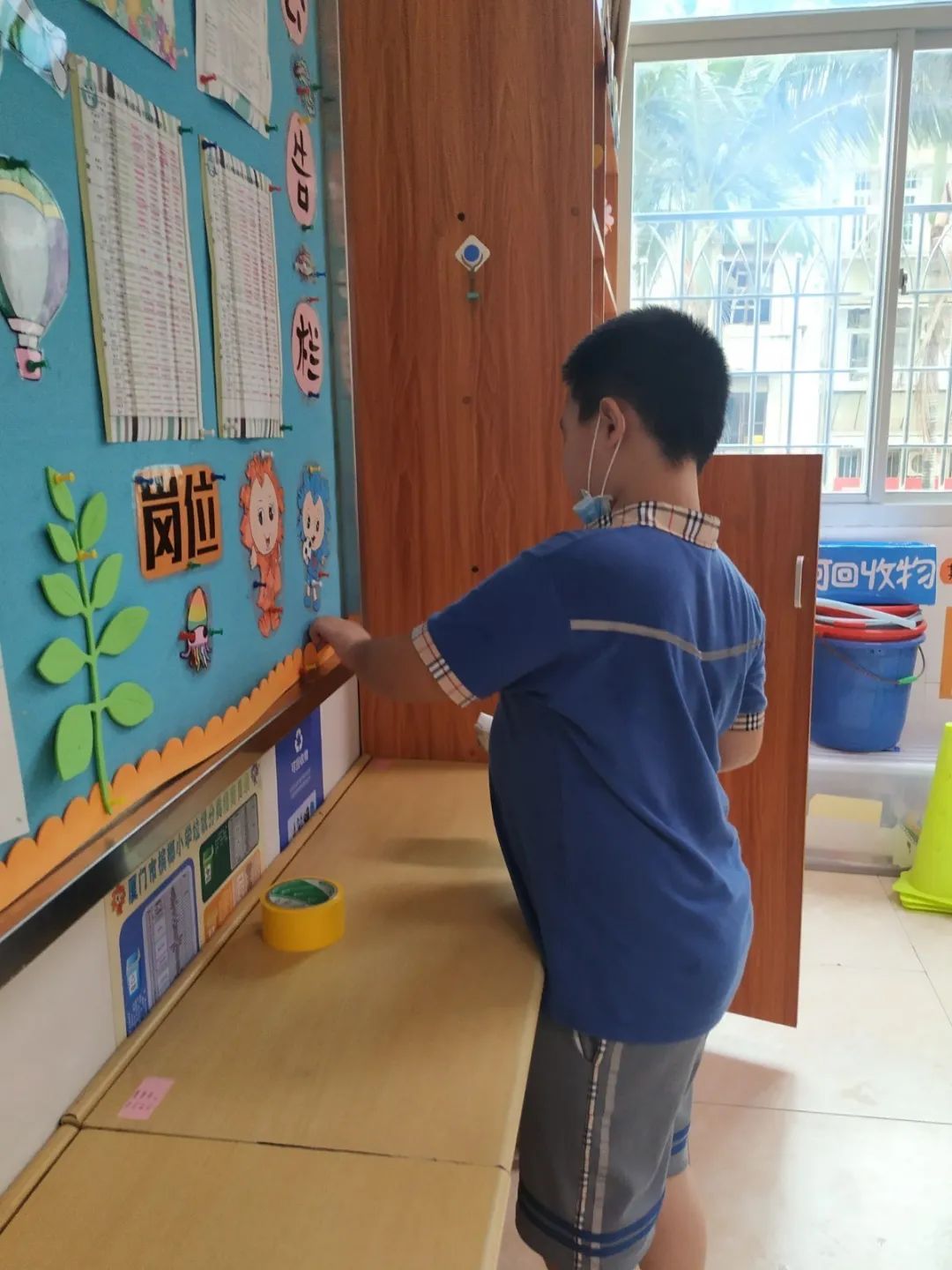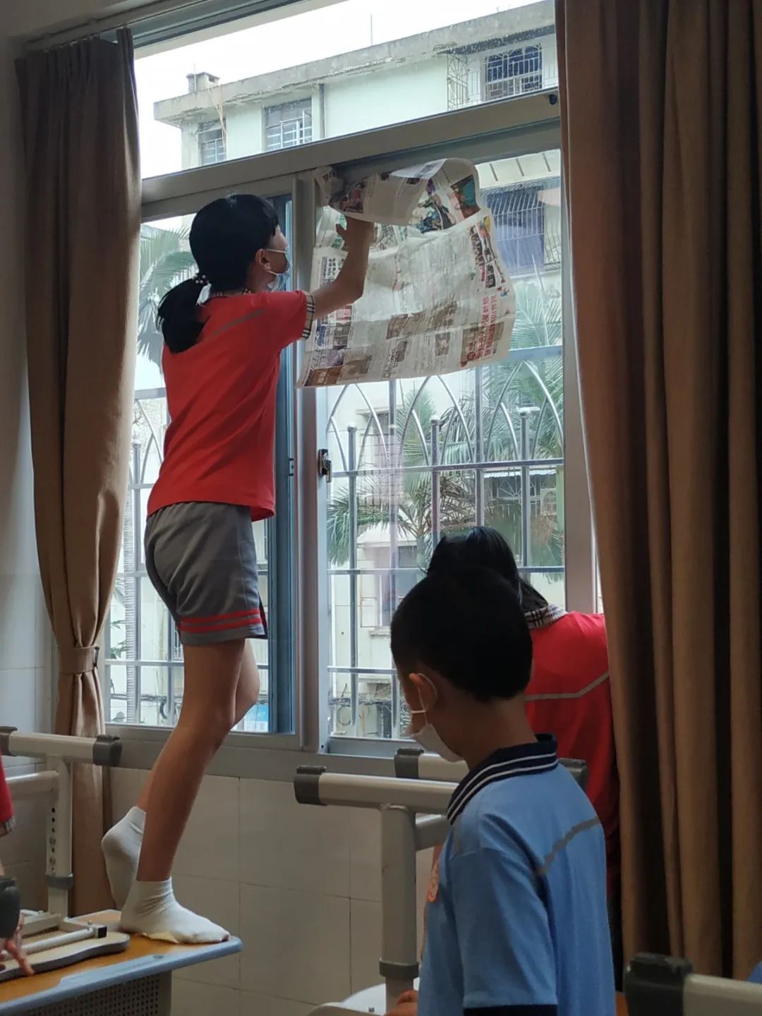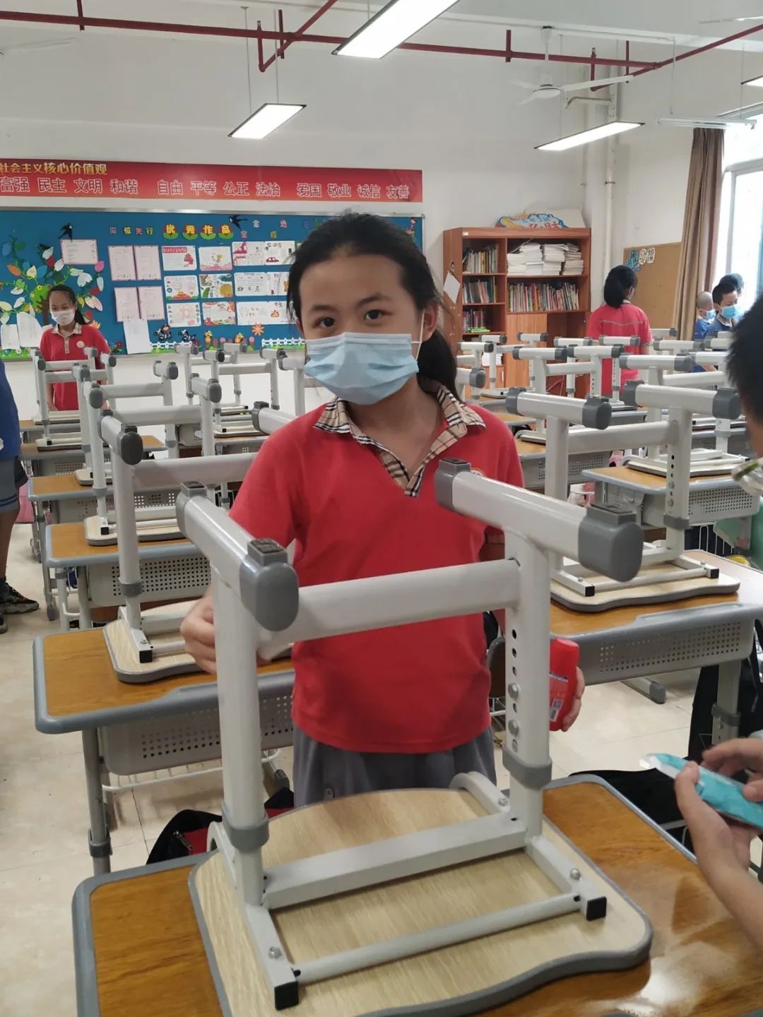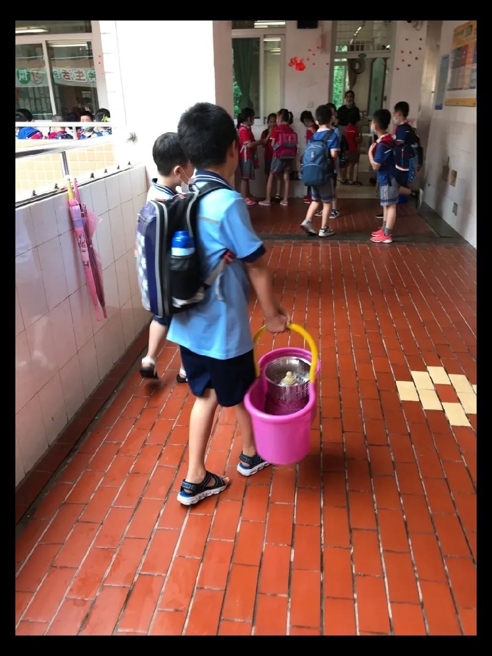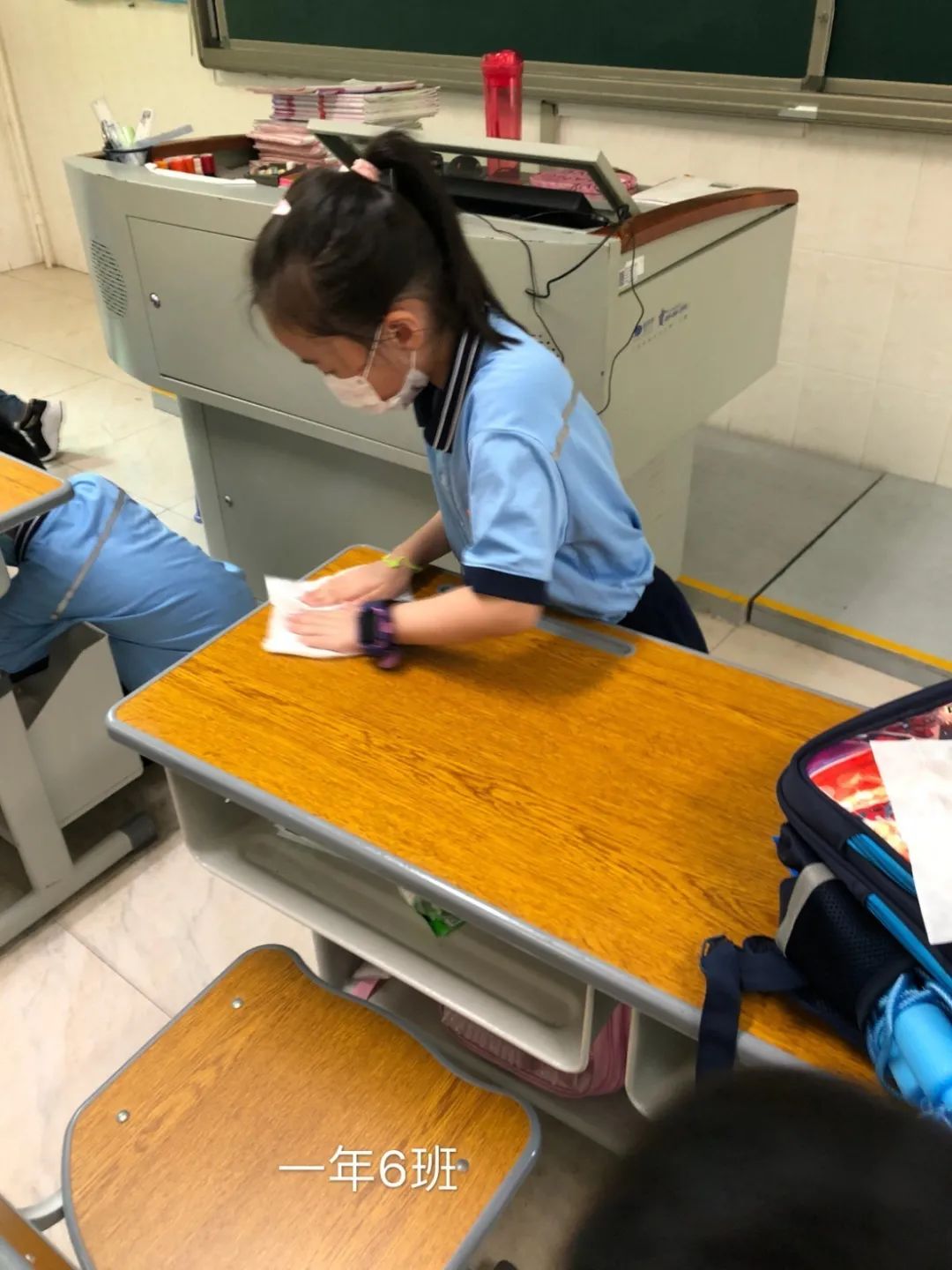 在班会课中各班学习的劳动技能,应当马上应用于实践——这不,下午第二节课起,全校组织了如火如荼的大扫除活动。
