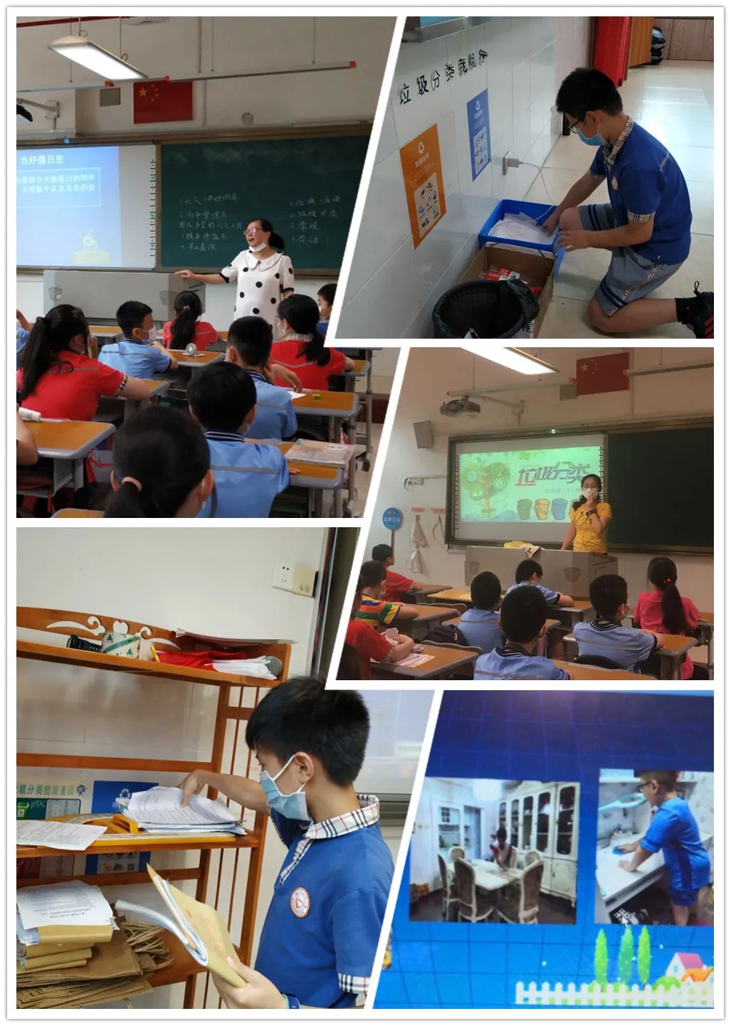 各班同学在班主任的指导下,进行了垃圾分类知识的学习与回顾,